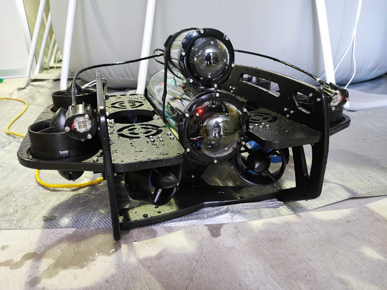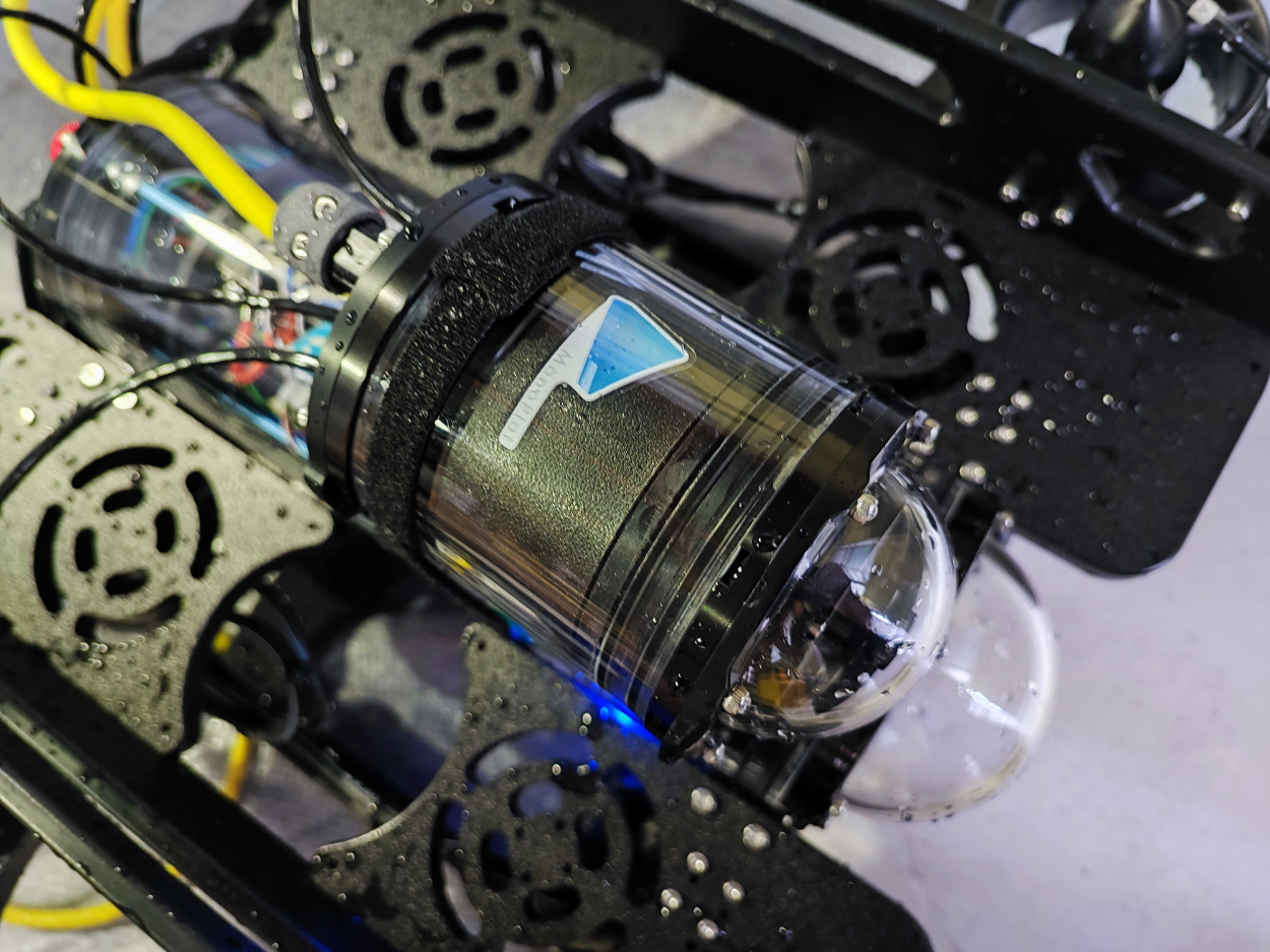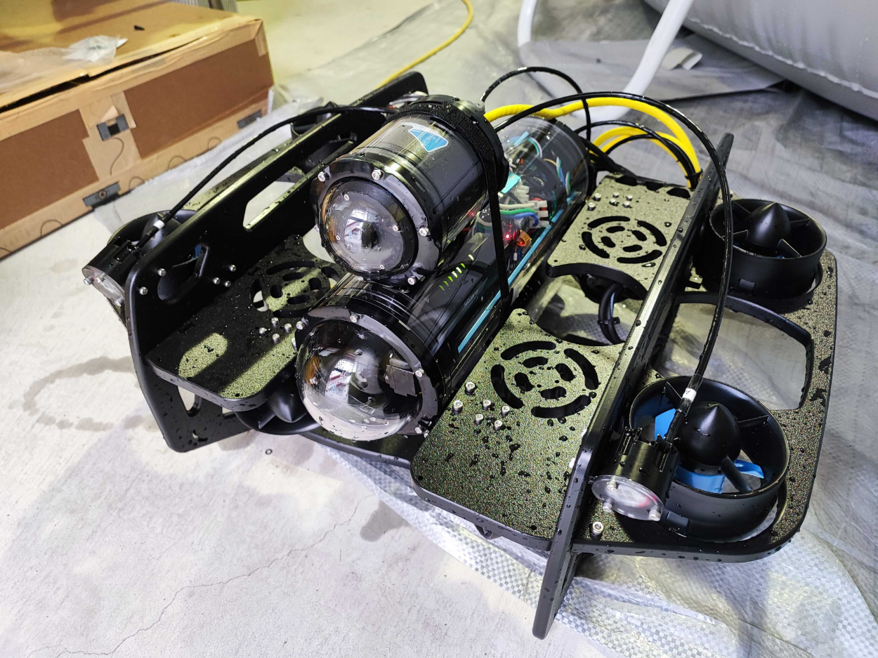 小型水中ROVに搭載可能なNIR照明+カメラユニット。水深100m相当までの環境で使用可能、濁度のある環境にて可視光カメラよりも視認性が向上します。NIR照明無しで低照度環境でもある程度の映像撮影が可能です。
