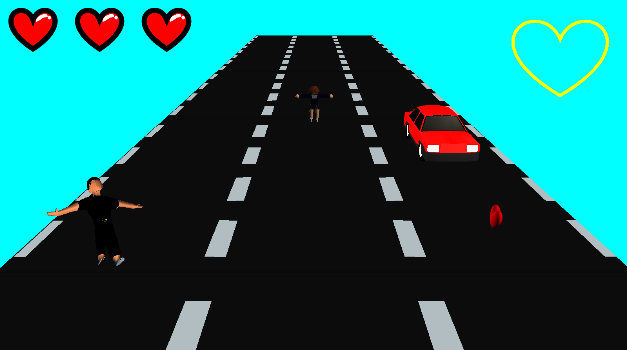 障害物として車が前方から迫り、車の前にはハートというアイテムが付属しています。