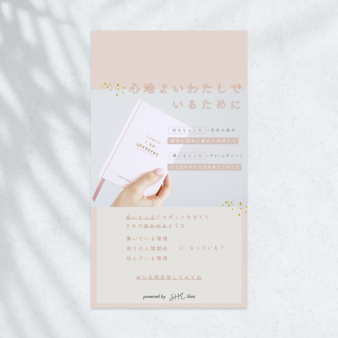 自分の好きなところはもっと好きに。嫌いなところはチャームポイントに出来るように。自分らしく心地よく過ごしてもらいたい…!という想いで作成しました。