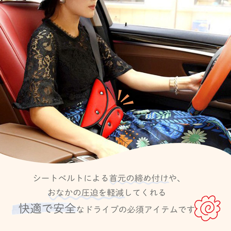 ECサイト商品画像(シートベルトパッド) まみほ フリーランスWebデザイナー OVERVIEW 全体の雰囲気に合うよう、素材写真の車の座席やハンドルの色を変更するなど工夫しました。 YEAR 2021