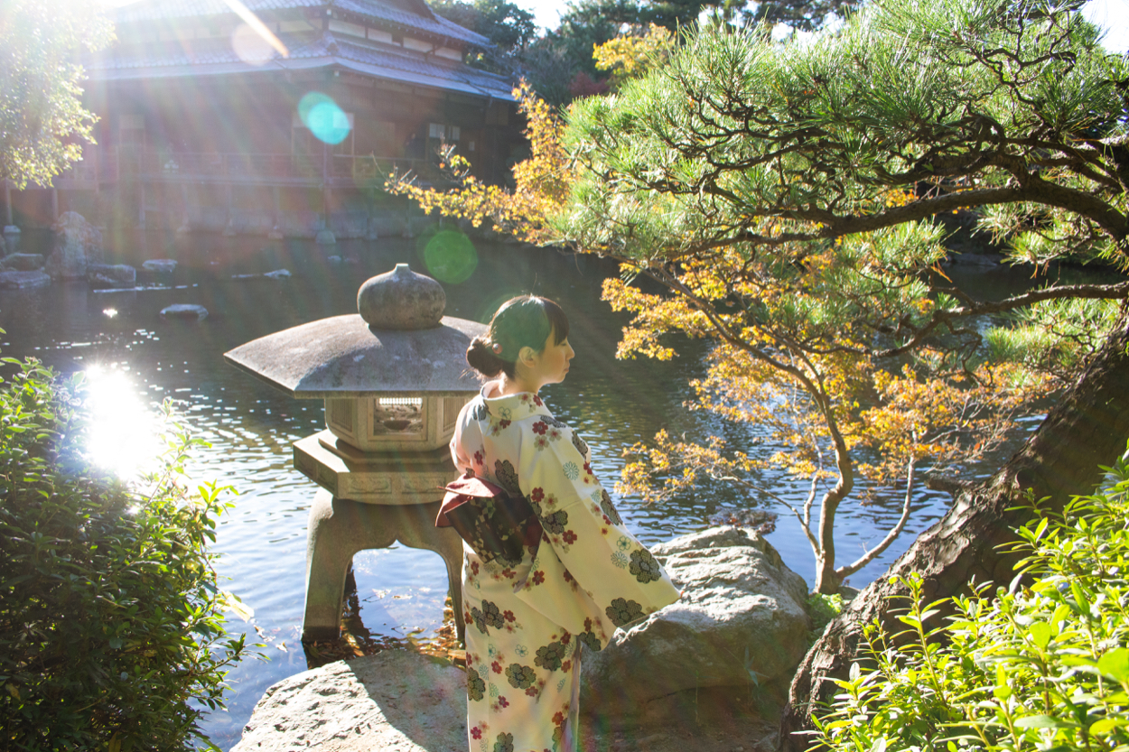 被写体活動をされているなみさんと日本庭園にて撮影しました。着物と紅葉が素敵でした。