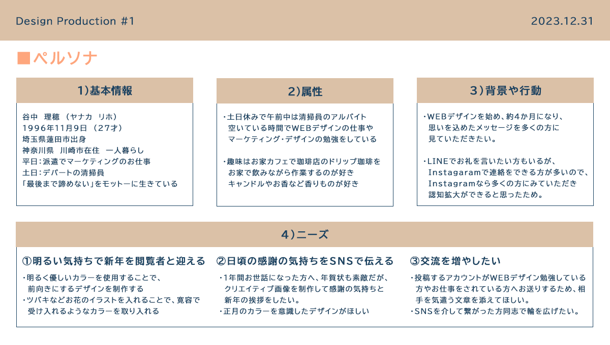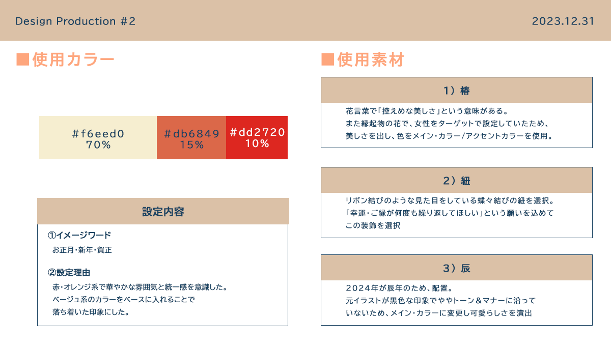 年越しも近く、デザイン制作をすることで友人や知人などSNSで認知拡大のため。