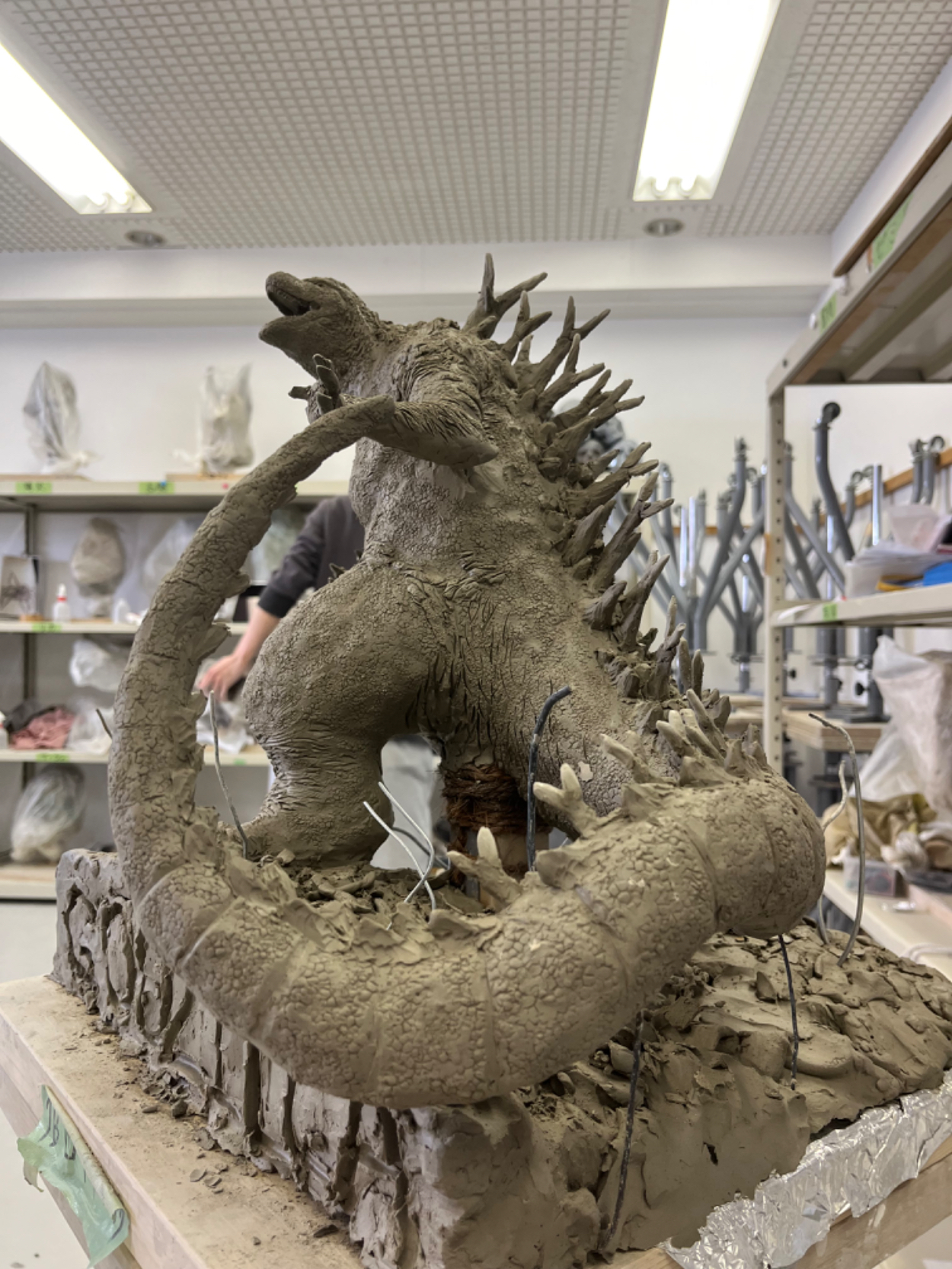 GODZILLA 田中翔彩 造形師 OVERVIEW 水粘土 足に全てをかけたと言ってもいいくらい集中してしまったため全体の彫刻バランスがとれていない。クラスメイトと協力しゴジラvsキングギドラになるよう制作したが単体でも成り立つようなポージングをとても意識した