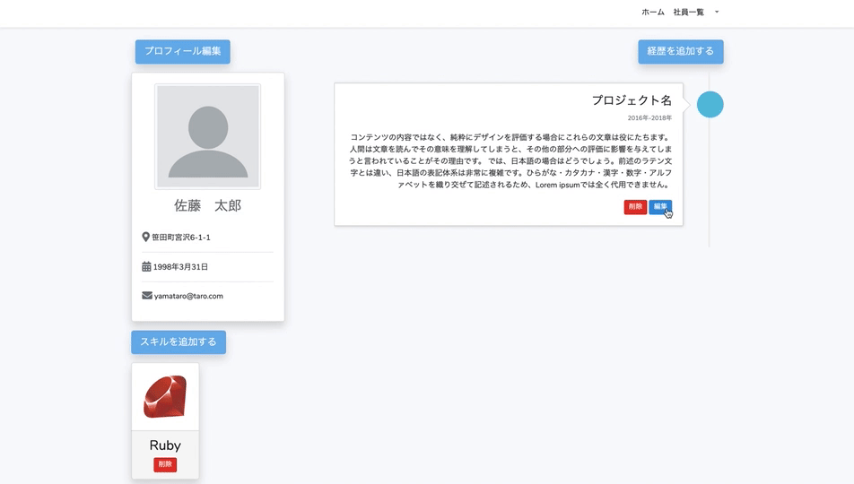 経歴編集機能