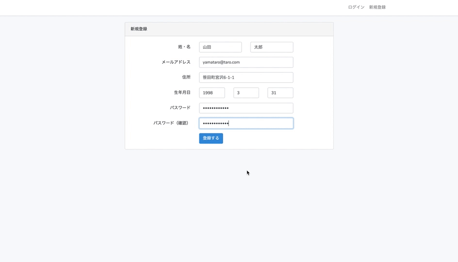 新規登録機能