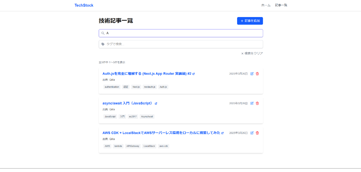 zennやqiita、Xなどで収集した記述記事を一元管理するアプリが欲しいなと思ったことと。いままではPasSにデプロイしてきましたが自分でインフラを構築してIaaSにデプロイしたかったこと。大規模なシステム開発でしばしば用いられるAWS、サーバーを意識せずアプリケーション開発のみに集中することができるサーバーレスアーキテクチャに興味があったことなどが理由で作成しました。