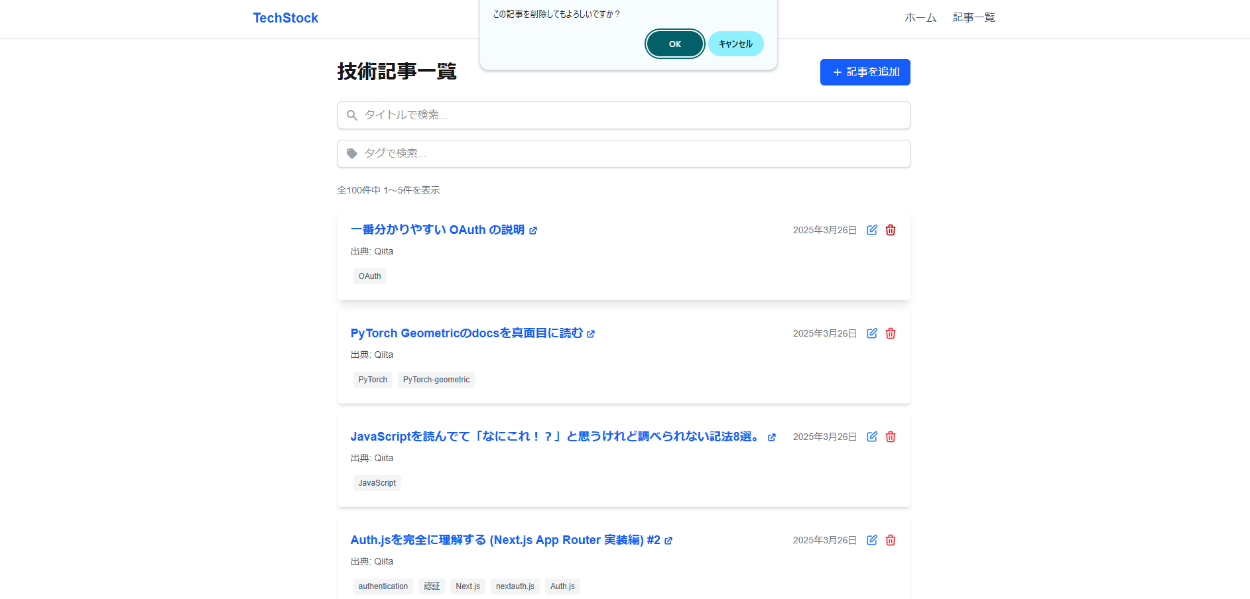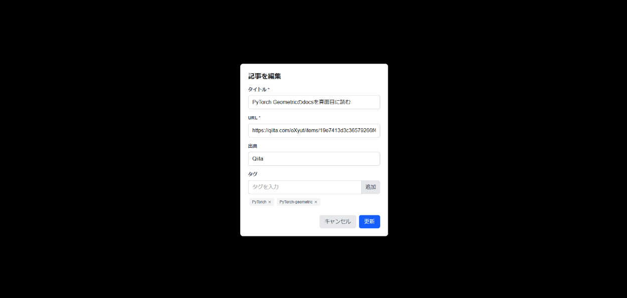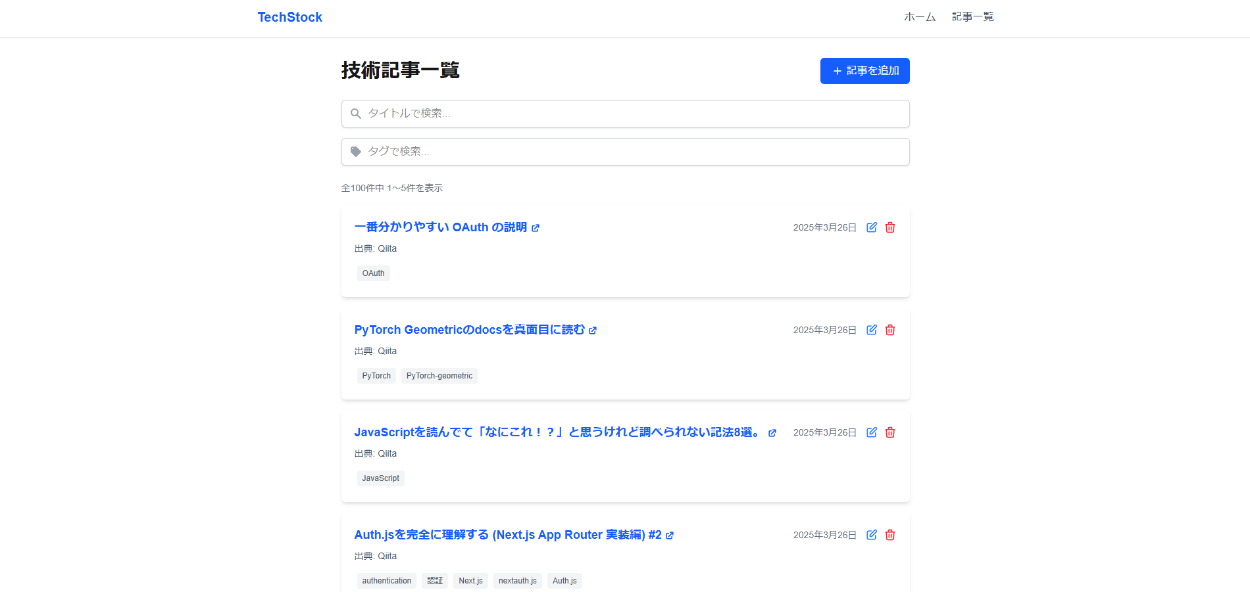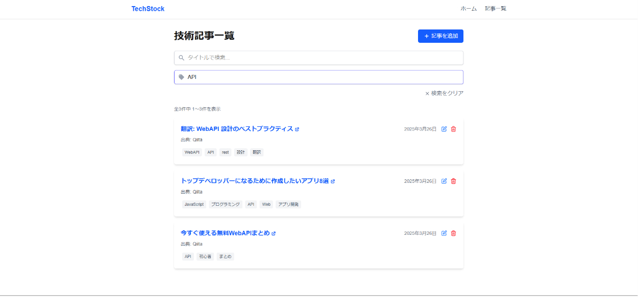 このアプリは技術記事を一元管理することを目的としており技術記事の作成・編集・削除ができます。また、特定の時間になるとバッチ処理によりqiitaのapiをたたくことで記事を自動で取得できます。技術記事のタイトル検索、タグ検索に対応しており自分が見たいタグやタイトルの記事を検索することができます。
