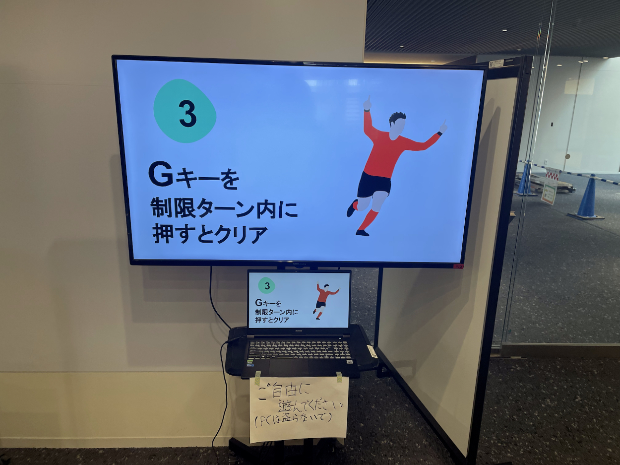 制限ターン内にキーボードのGを押すと、ゲームクリアです。