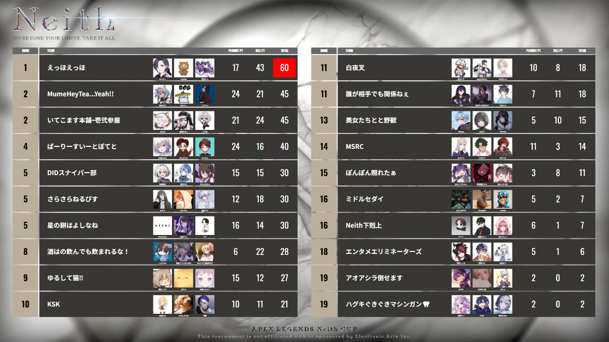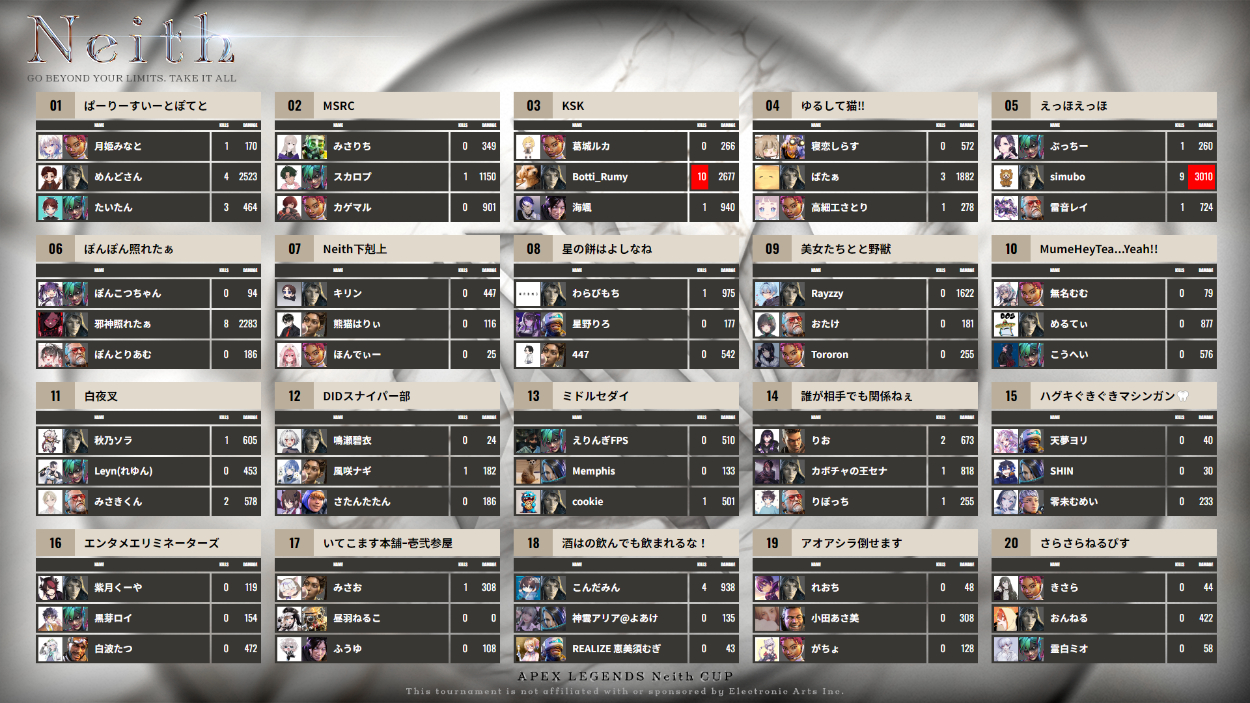 従来のリザルトシステムはスコア表にアニメーションを組み込むことができ、ハイクオリティな半面、開発コストが高い問題がありました。 こちらはスプレッドシートとGASを利用して低予算で作り上げたものになります。 集計は表計算とGASで自動化してます。 OBSのブラウザソースで送出できます。