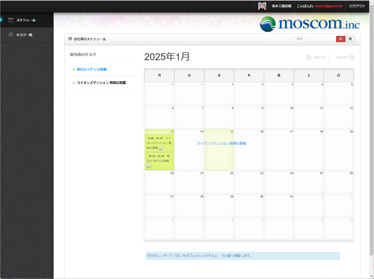 業者様の画面、タスクをスケジュール
