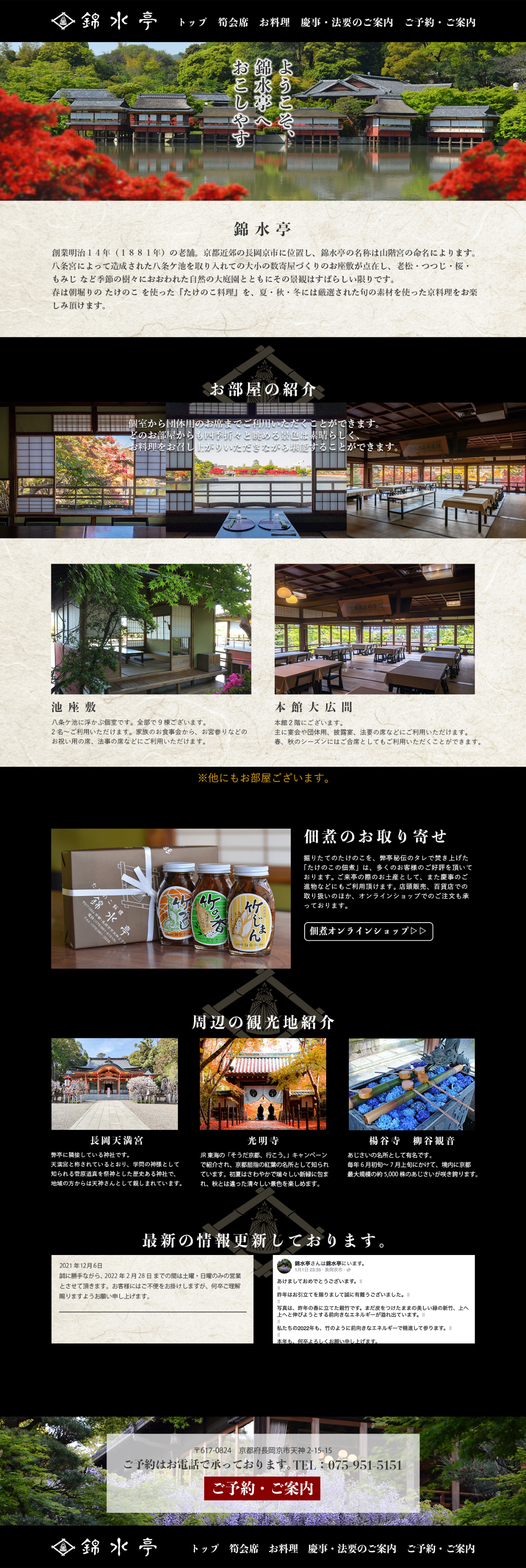 デジタルハリウッドスタジオ京都校の卒業制作で錦水亭様の架空のリニューアルサイトを制作しました。 制作年:2022年1月〜3月 制作期間:2ヶ月