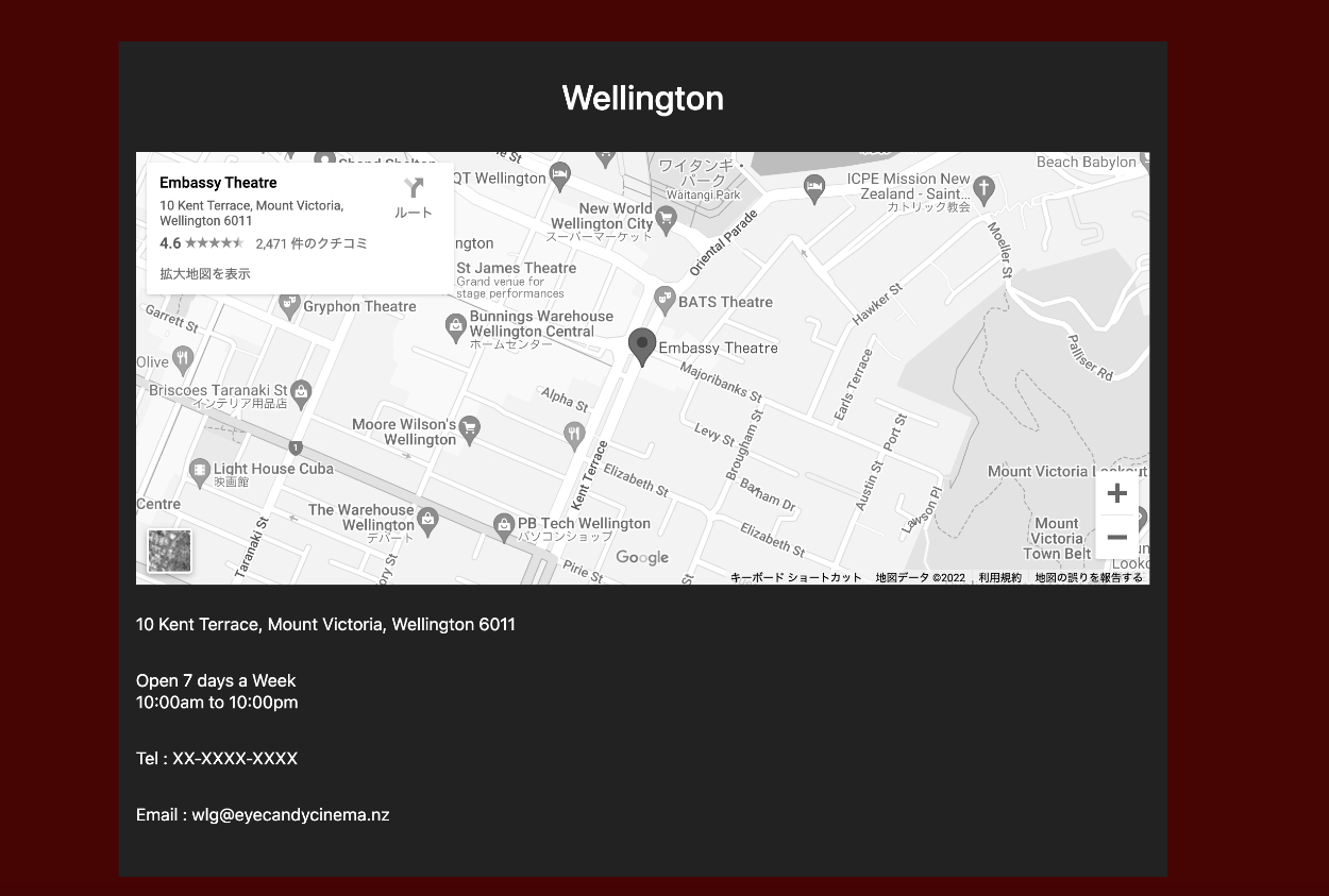 全体の世界観を崩さないため、Googleマップはモノクロに変更。