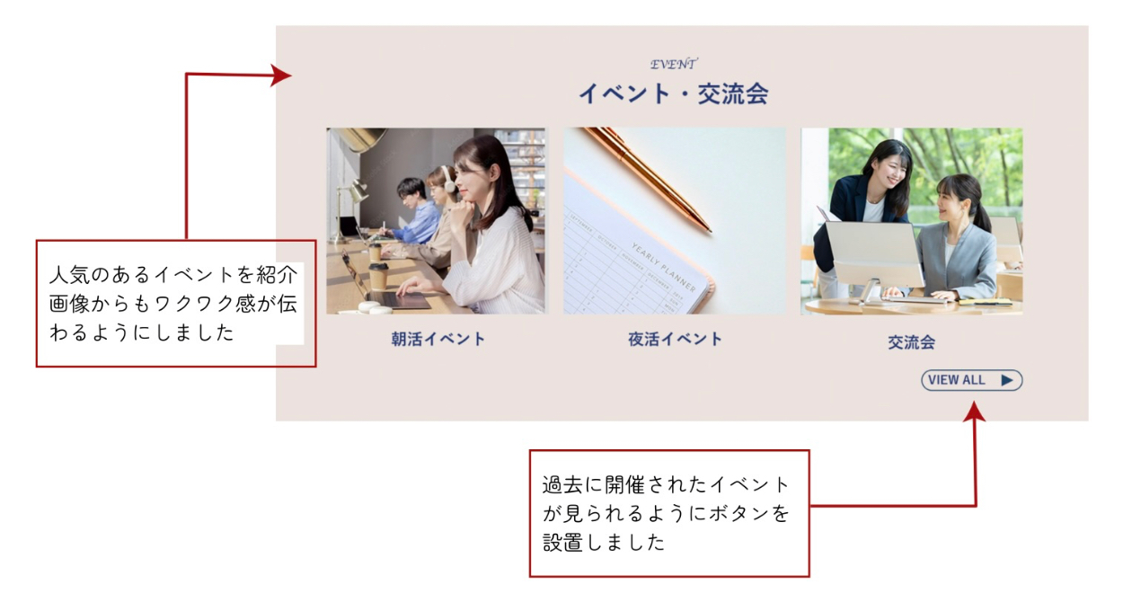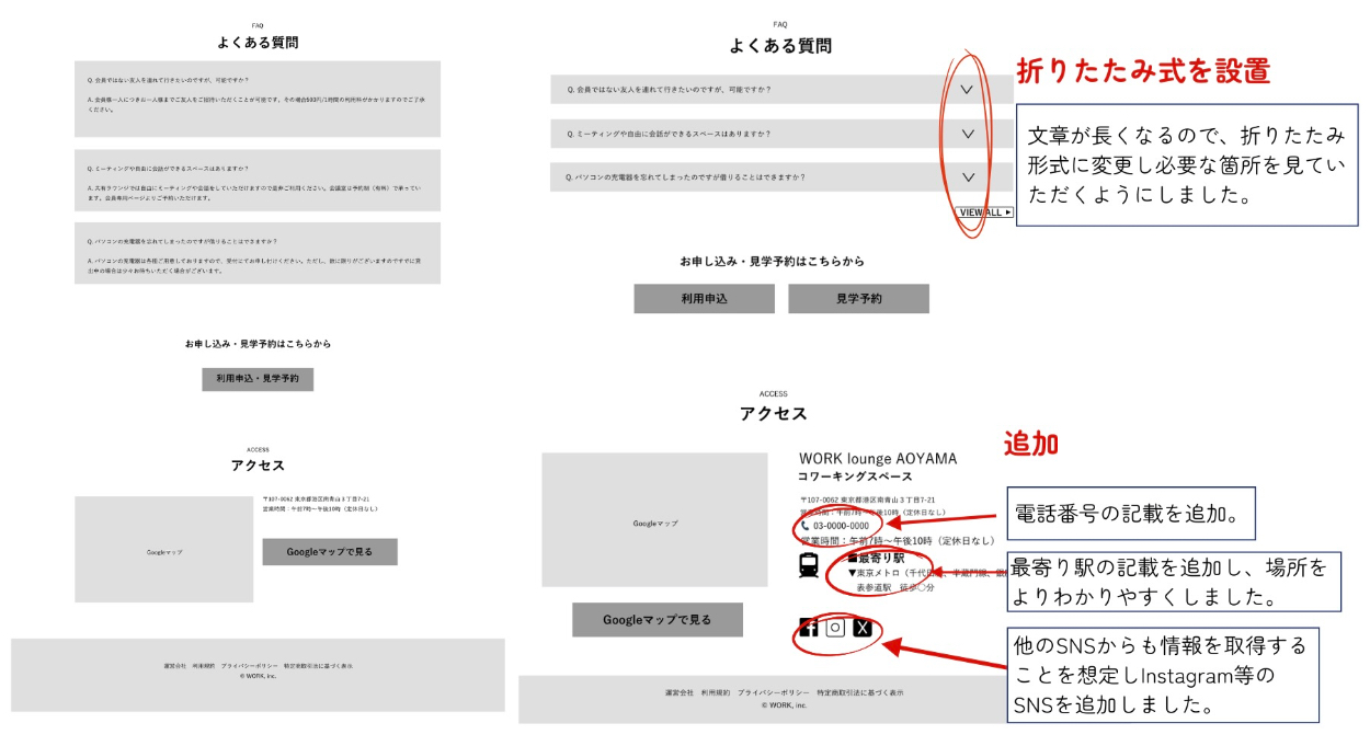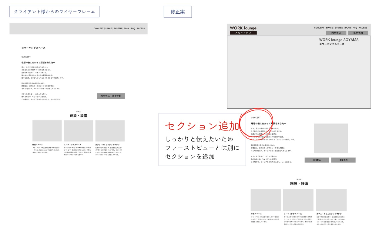 ◎どのように配置をすると視線誘導が上手くいくのかを考え、クライアントからいただいた WFをブラッシュアップをする、そこに配色や画像を加え、クライアントの求めている物を制作するという経験をし、何故このようにしたのかを言語化する必要性をこれまで以上に感じました。