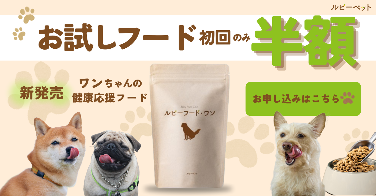 キャンペーン内容の「お試しフード初回半額」が一番目立つように大きく配置。