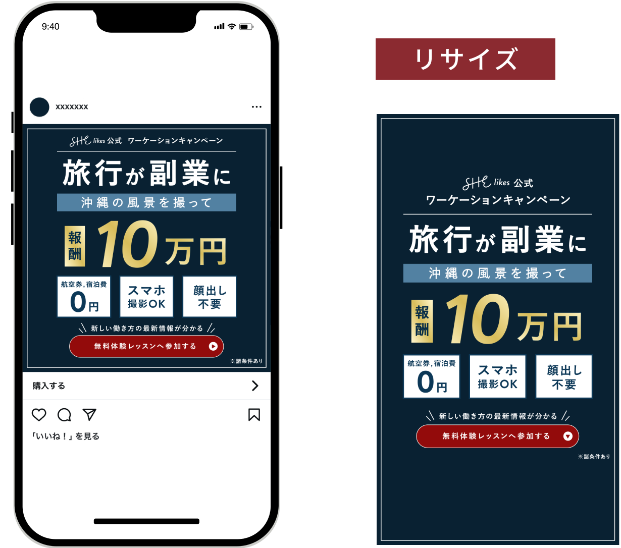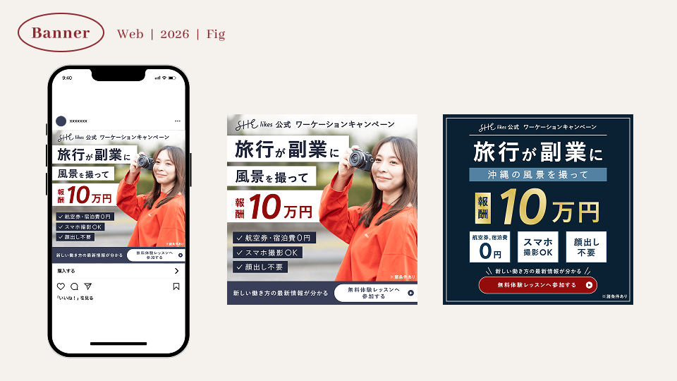 • 難しいご依頼を理想通りのデザインにしてくださってありがとうございます!これは今までのSHElikes広告に無いです!