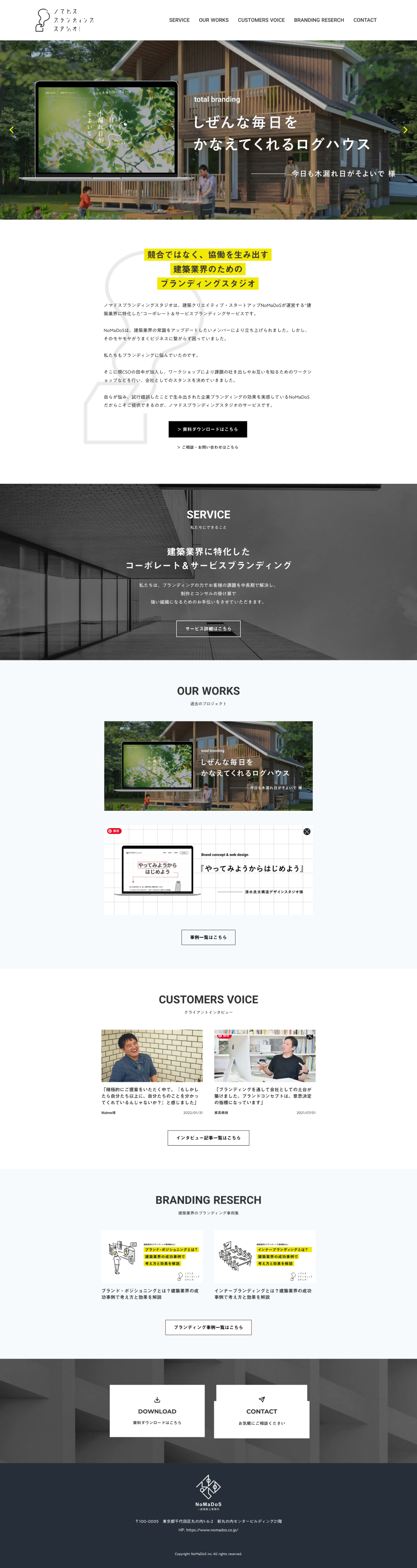 【リニューアル】ノマドスブランディングスタジオサービスサイト 鈴木麻里衣 デザイナー OVERVIEW 実績も増えてきたので、サービスサイトのリニューアルをすることになりました。こちらもWF・デザイン・実装(STUDIO)まで全て担当しました。 YEAR 2022 WEBSITE