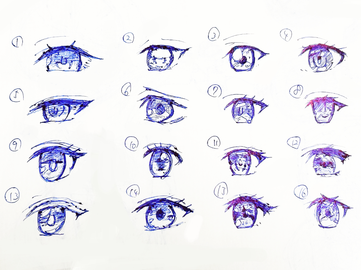 最近、流行りの瞳を色々と試し書きしてみました。
