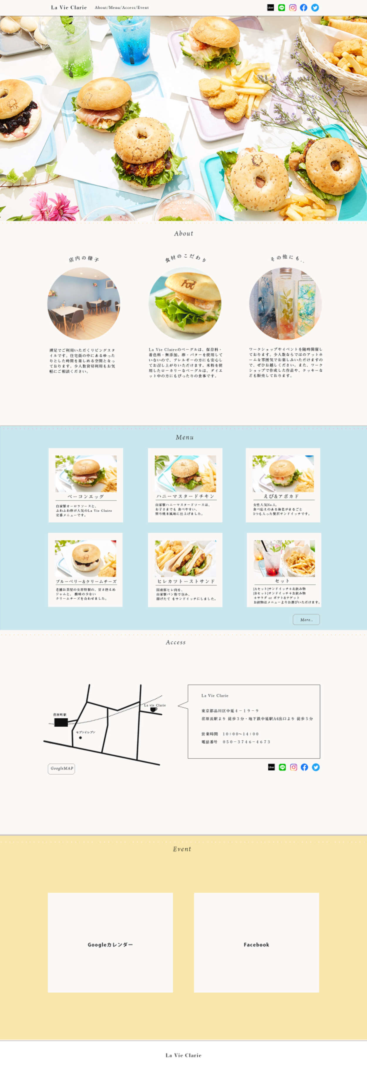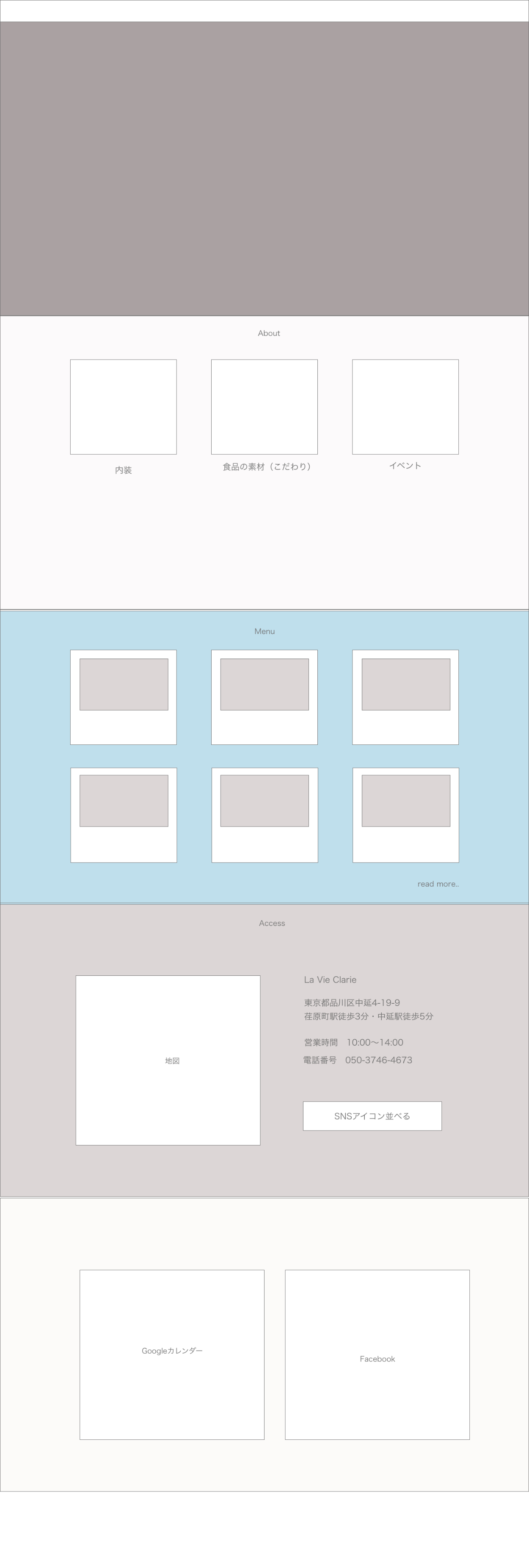 ・背景色の変更 カフェを利用して欲しい客層が30前後の女性の為、もう少し落ち着いた雰囲気にして欲しい+お店のカラーが水色・白・ダークブランの為、ダークブランも取り入れて欲しいとのこと