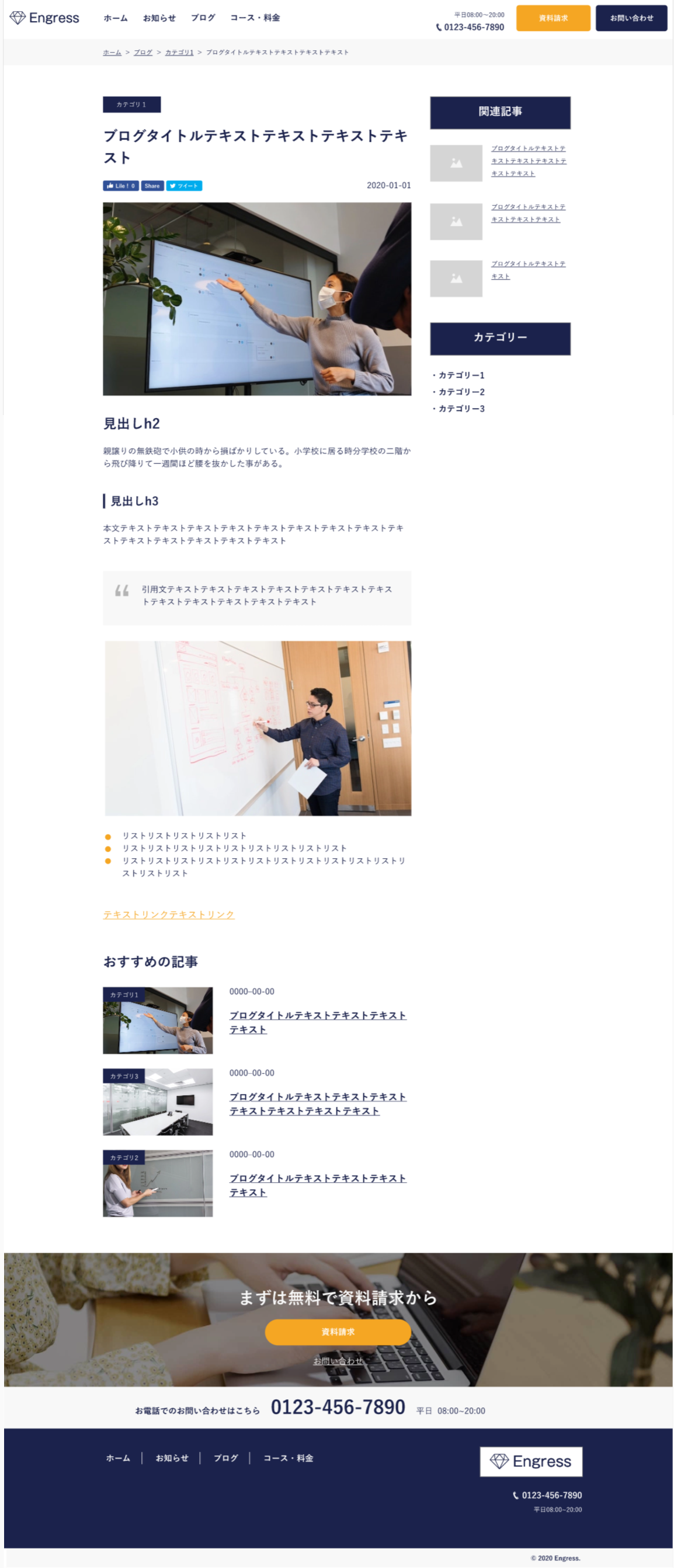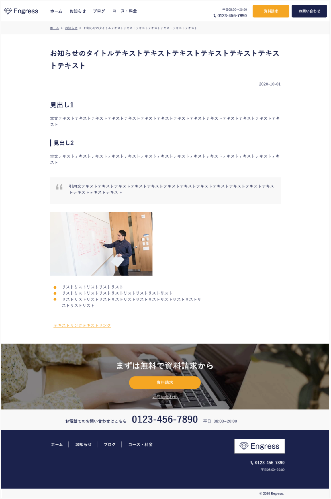 架空のWordPressを用いた企業サイト制作物です。 XDデザインからコーディング。 対応範囲:WPオリジナルテーマ。 対応ページ数:7ページ。 制作時間20日(100時間)