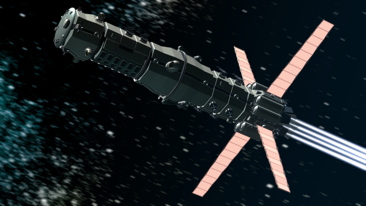 宇宙船のイラスト #3 Kou Kawamura 背景作画・美術設定・3DCG・SF設定 OVERVIEW 個人で出した同人誌の表紙絵。 YEAR 2023 完成画(カラー)3DCGモデリングは資料収集も入れて7日間程度(Blender使用)。別バージョンのイラスト