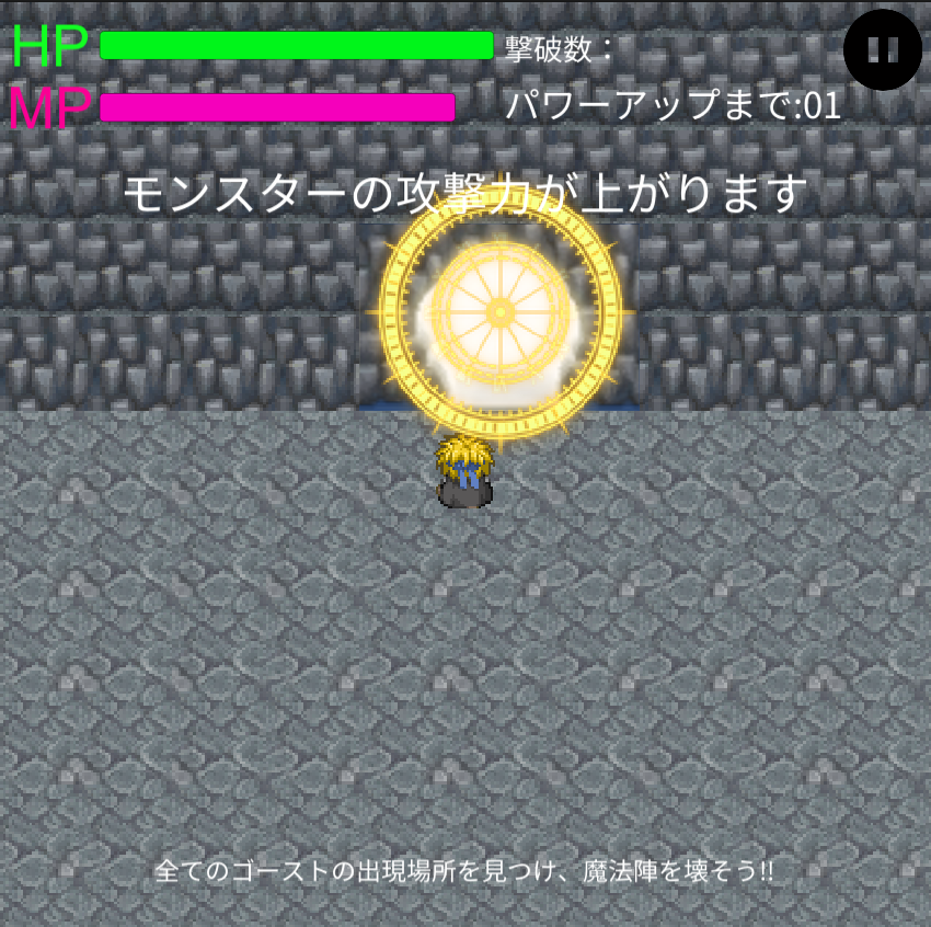 以上の点から本ゲームの内容は、迷路のように入り組んだ洞窟と定期的にスポーンと強化を繰り返す幽霊を、プレイヤーが魔法を駆使して攻略するゲームに決定しました。