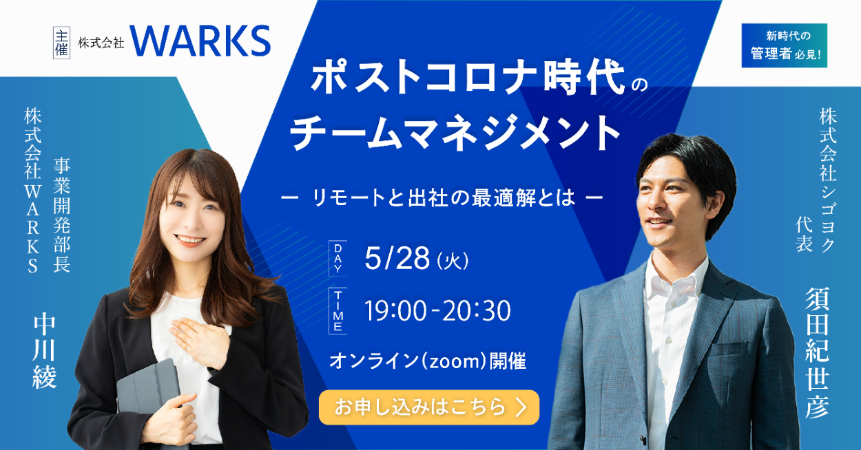 • 企業に対して新時代のワークスタイルコンサルティングを行う株式会社WARKSが、パートナー企業である株式会社シゴヨクと共同主催するオンラインセミナーの告知と集客