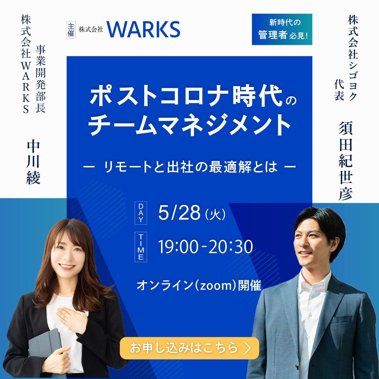 • 登壇者名:株式会社WARKS 事業開発部長 中川綾/株式会社シゴヨク 代表 須田紀世彦 の2名
