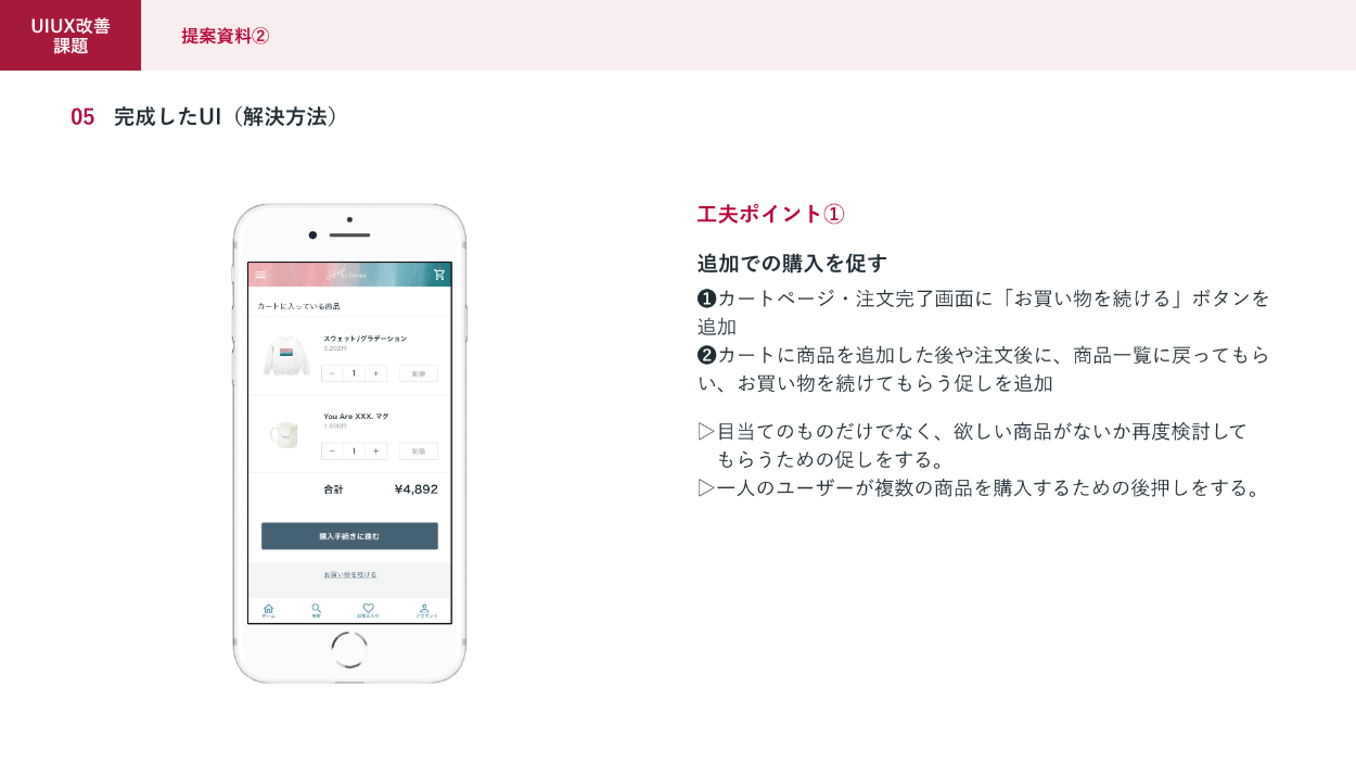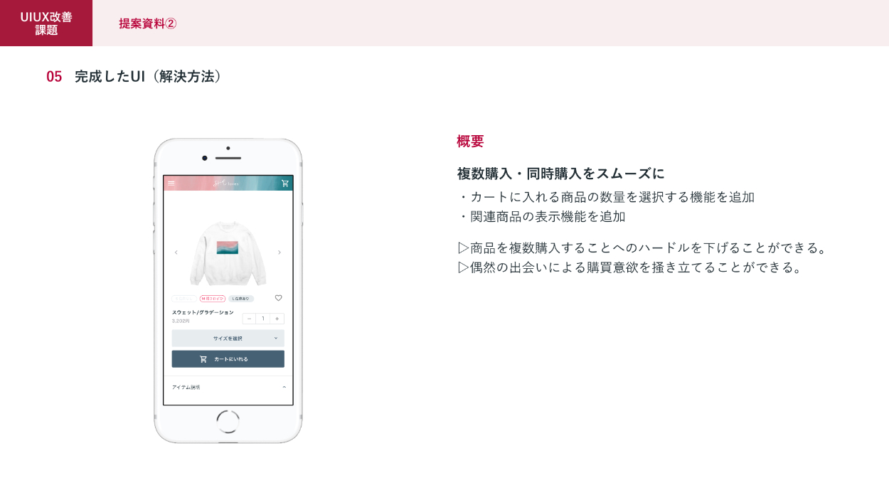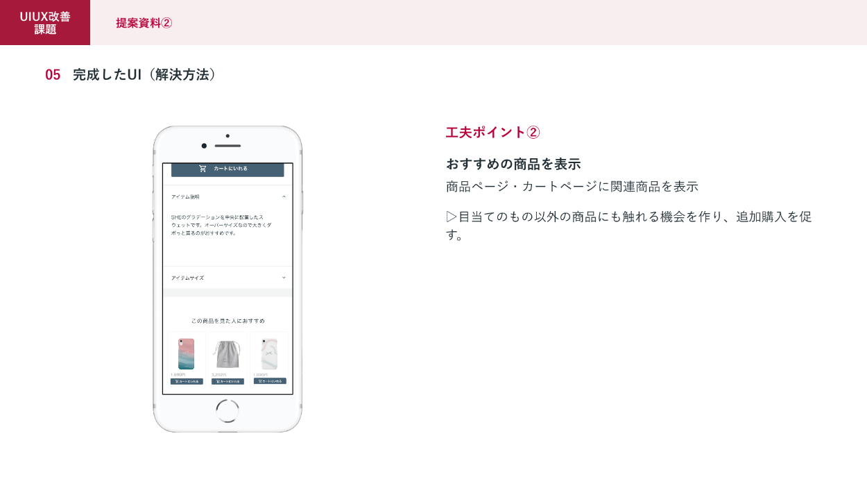 ②一回の購買における購入品数が平均一個と購入単価が低いという課題に対してのご提案