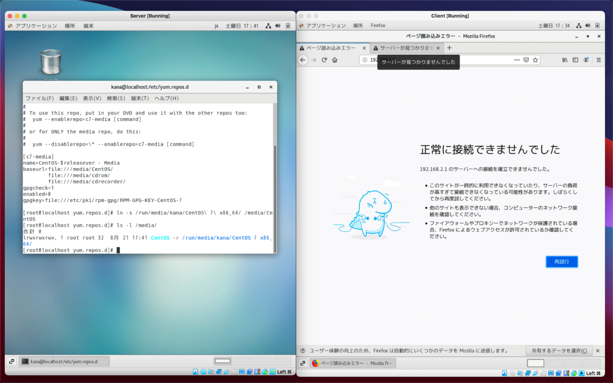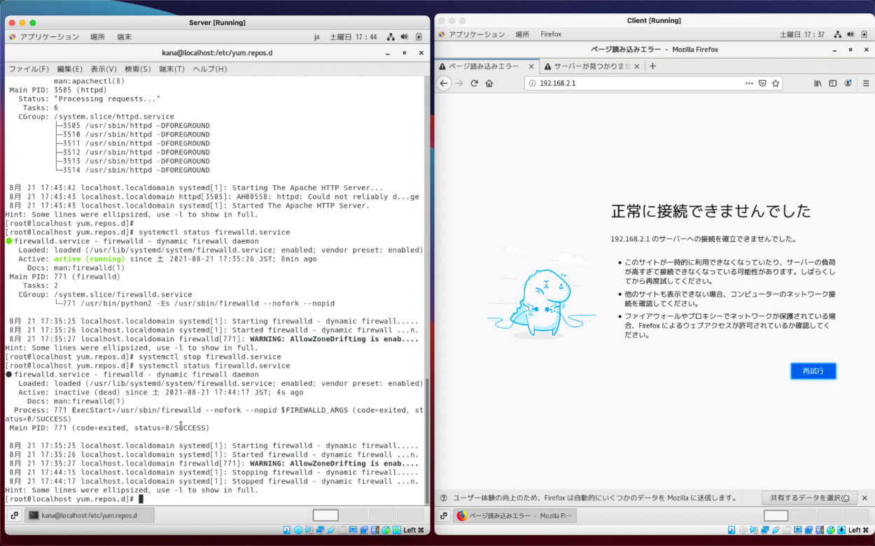 今の段階でClient機からホームページを閲覧できないことを確認します