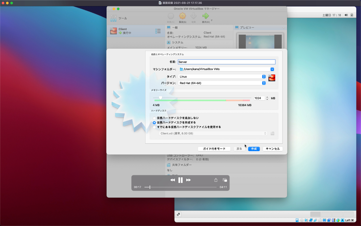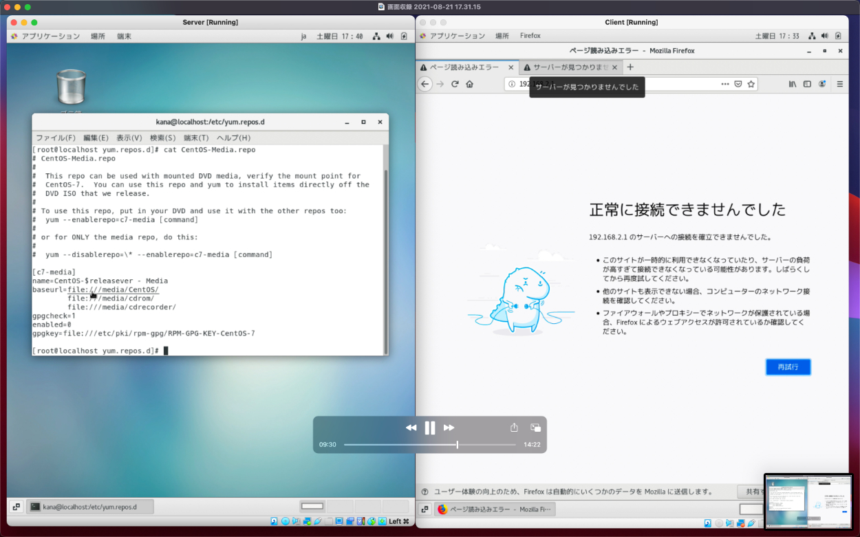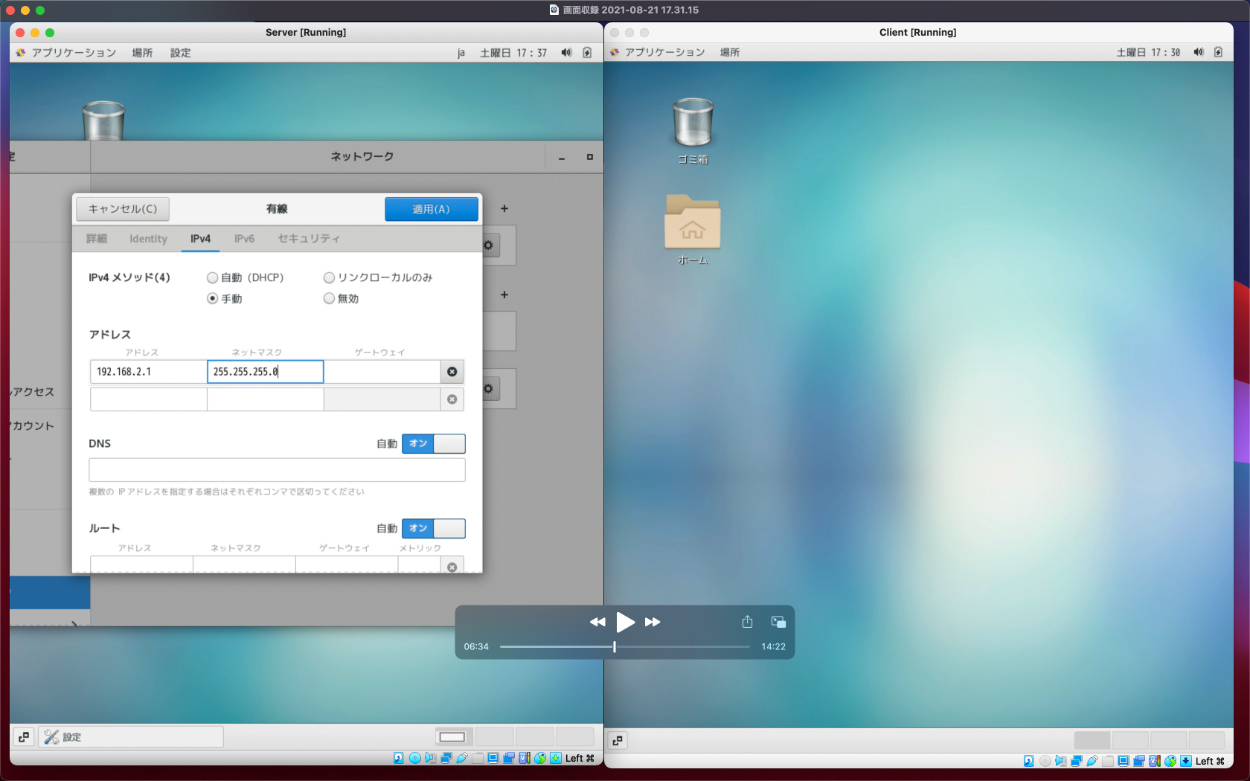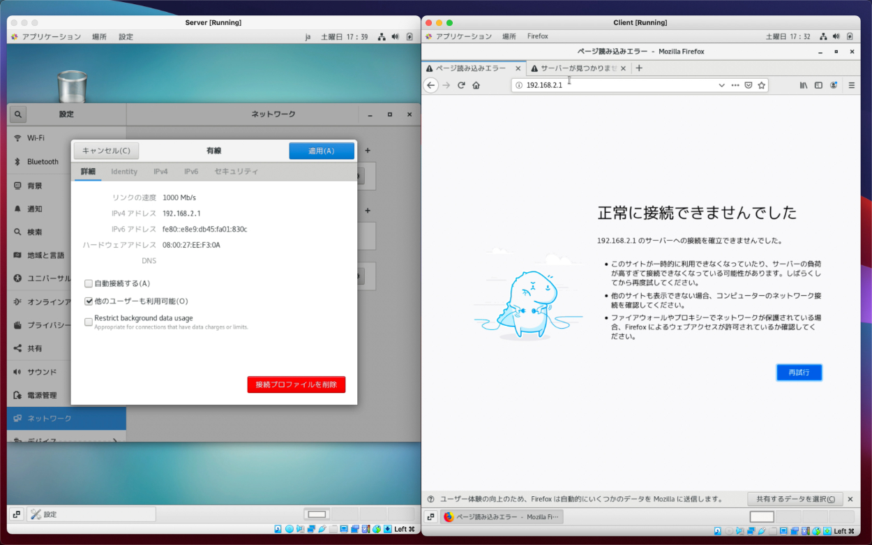 Server機アドレス:192.168.2.1 Client機アドレス:192.168.2.2 とします