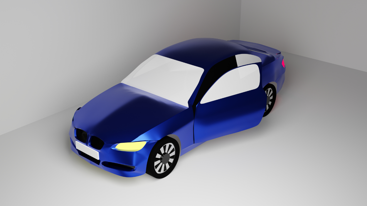 上の画像で完成予定でしたが、サイドミラーなどのモデリングし忘れがあったため、追加や修正を行いカバー画像のように完成させました。