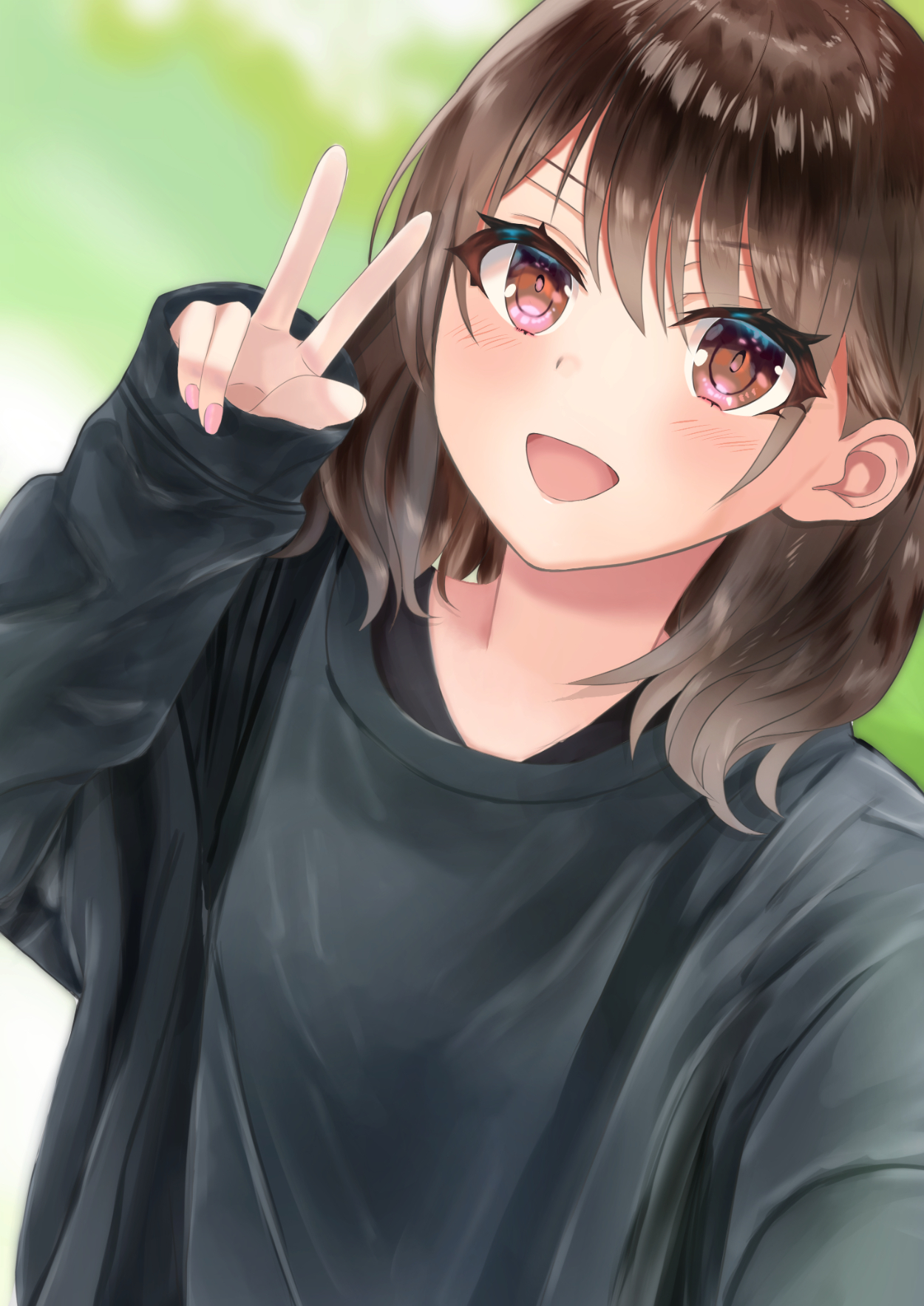 オリジナル。 制作時間:約10時間 投稿日:2021年4月18日 自撮りする女の子を描きたくて制作しました。服の塗りは厚塗りに挑戦しました。