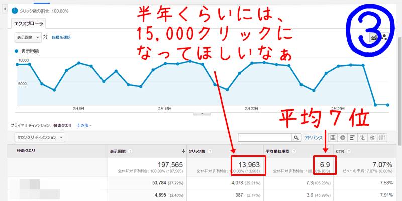 ③約1年後には、平均掲載順位7位・15,000クリックを達成する
