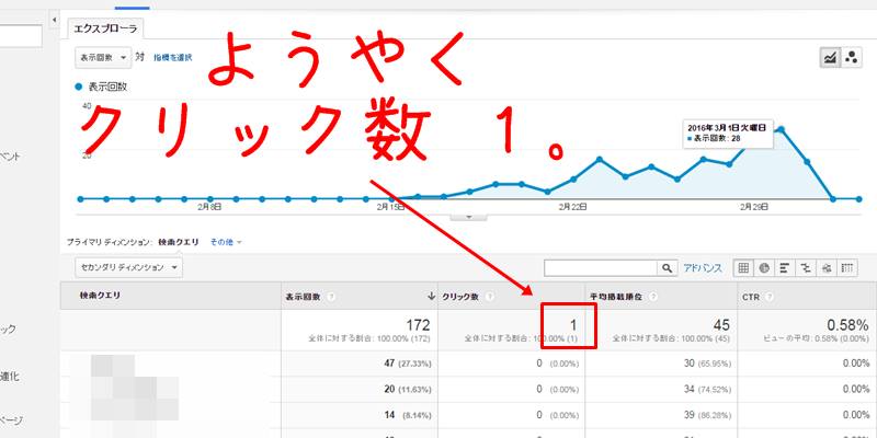 ①開始2週間ほどで、ようやくクリック「1」が発生する