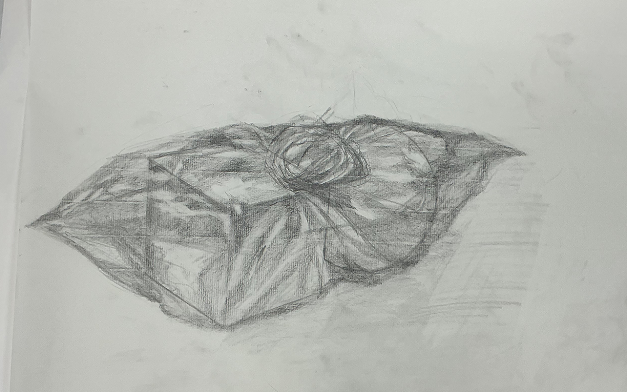 授業の中で取り組んだ4点のデッサンです。 形や質感、光の当たり方を丁寧に観察しながら、対象物の特徴をそのまま素直に描くことを大切にしました。 [制作時間:1枚約1時間30分~3時間]