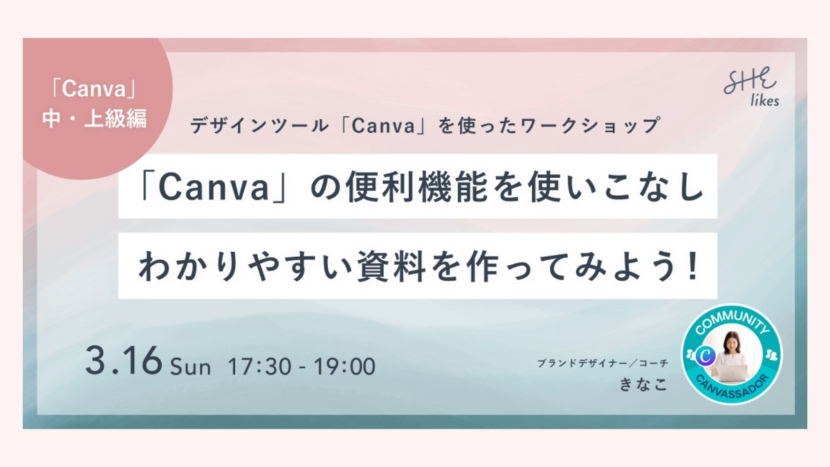 Shelikes様 わかりやすい資料を作るイベント講師登壇 Kinaco Design 理論と感性のブランド戦略 × デザイン設計✍️ OVERVIEW デザインツールCanvaを使った資料制作のコツをお伝えしました。 YEAR 2025