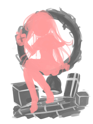 ≪ラフ≫ シルエットで大まかに良い雰囲気になりそうかを判断。自主制作なので、ここで筆が乗らなかった場合は別の構図やモチーフを描いたりします。