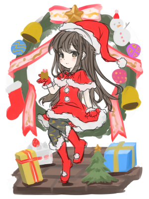 キラキラしたクリスマスの楽しい雰囲気が伝わるように念じながら描きました。女の子単体でもバランスが成り立つように気を付けました。