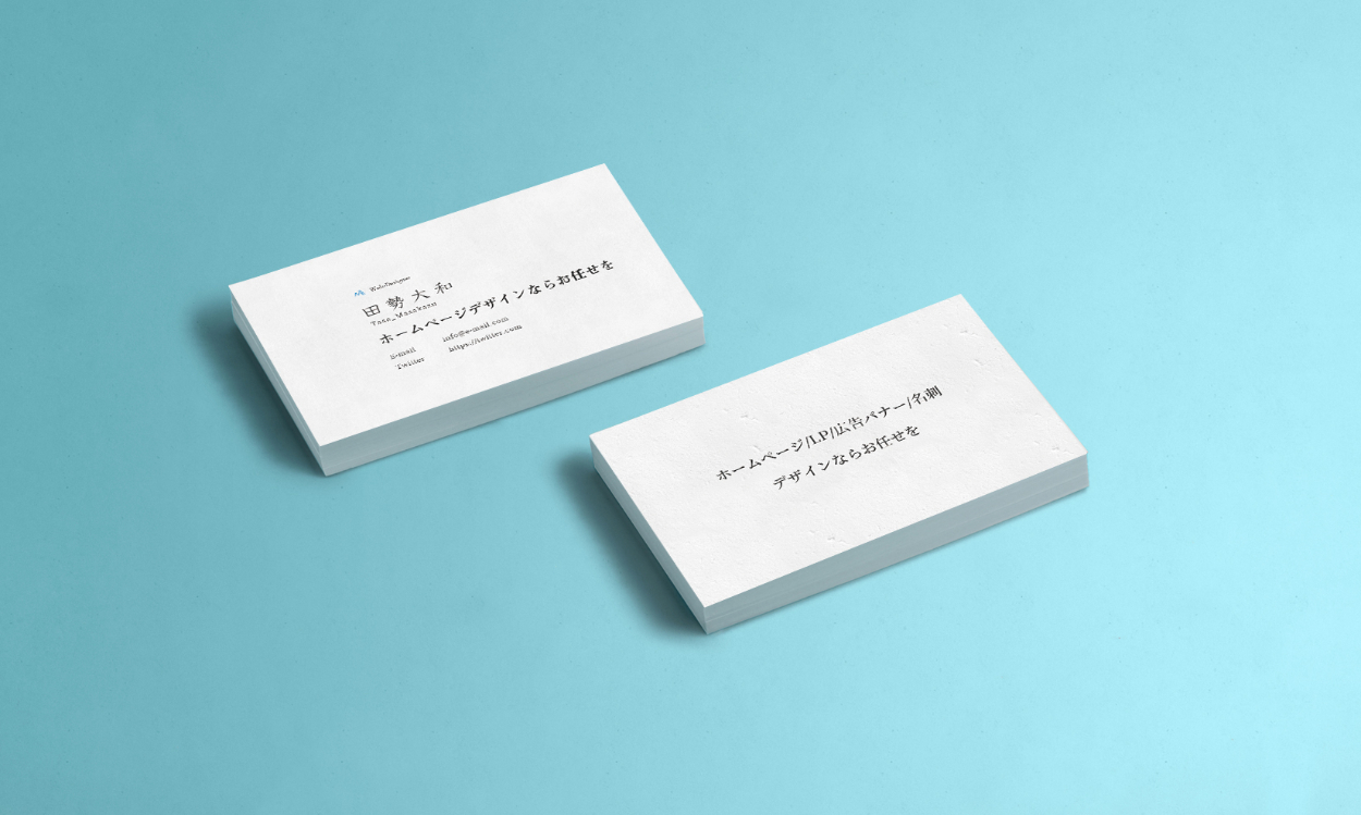 名刺デザインを制作しました 田勢大和 Webデザイナー OVERVIEW Photoshopにて制作しCanvaで印刷の依頼をし、実際に使っております こちらはPhotoshopにて制作、現在も使用しております。こちらは裏面ですこちらはアイキャッチ用にモックアップ画像を制作しました