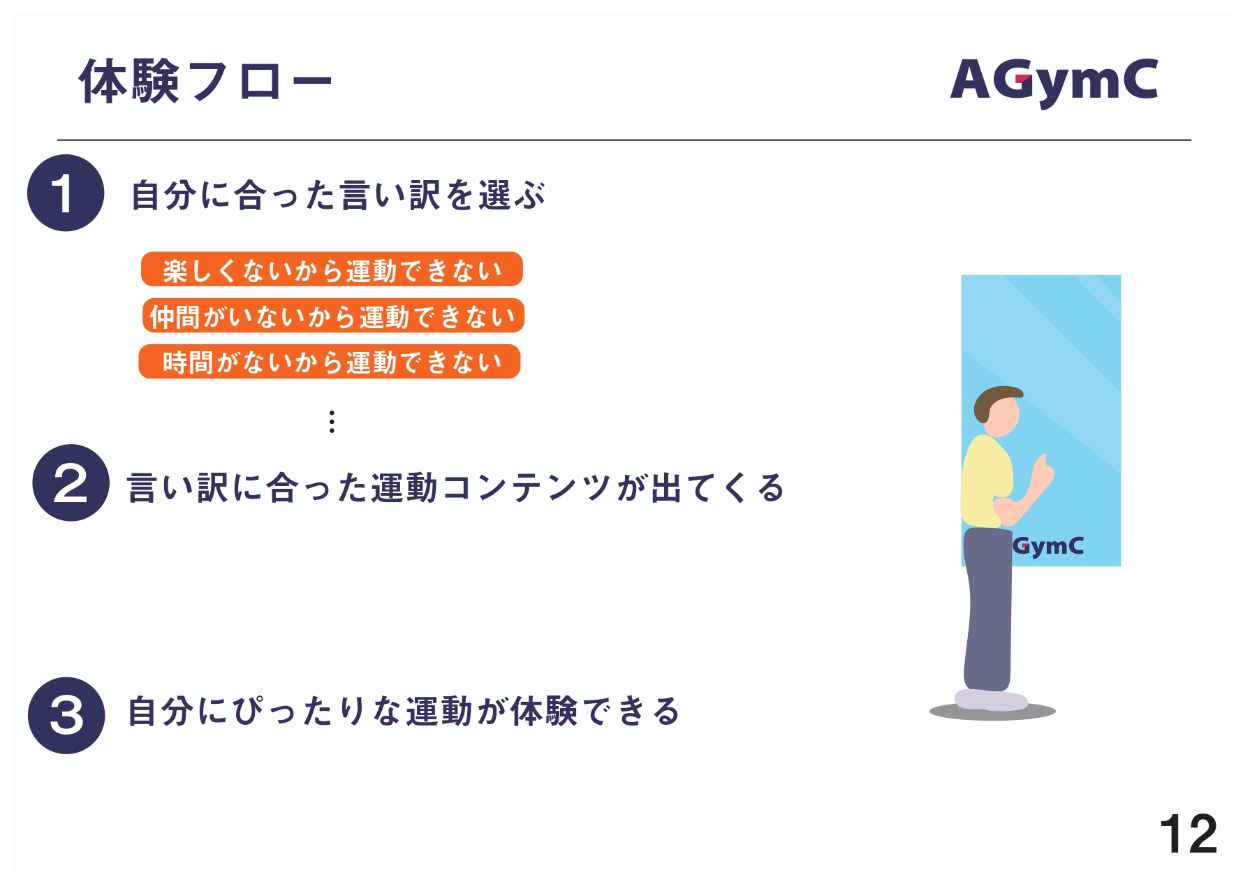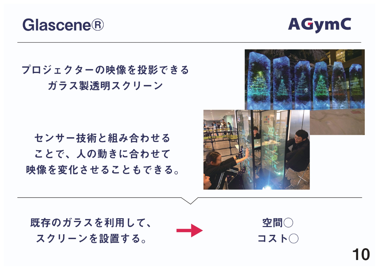 各都道府県の代表たちが集まる47INTERNSHIP参加し、「ニューノーマル時代に、企業が取るべき振る舞い」について企画しました。 素材の会社AGCのテクノロジーを駆使し、日本人の3人に1人が運動不足である現状を変えるスポーツジムを企画しました。