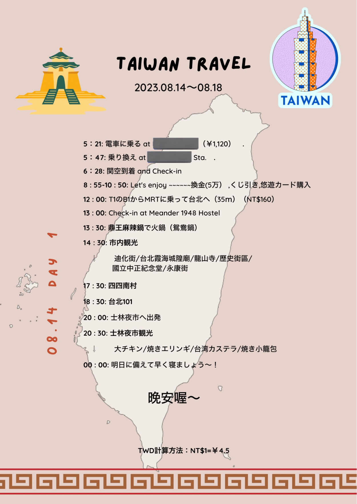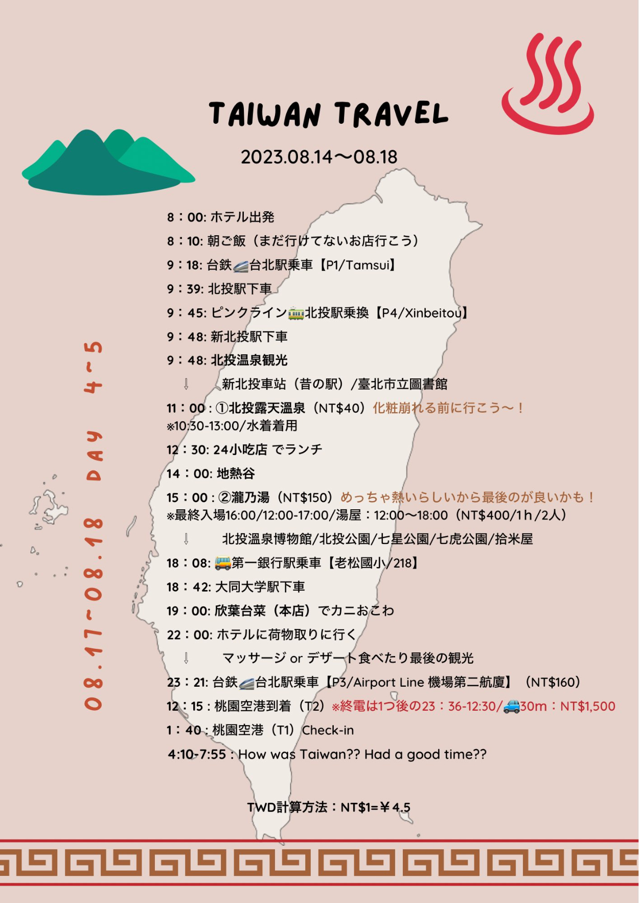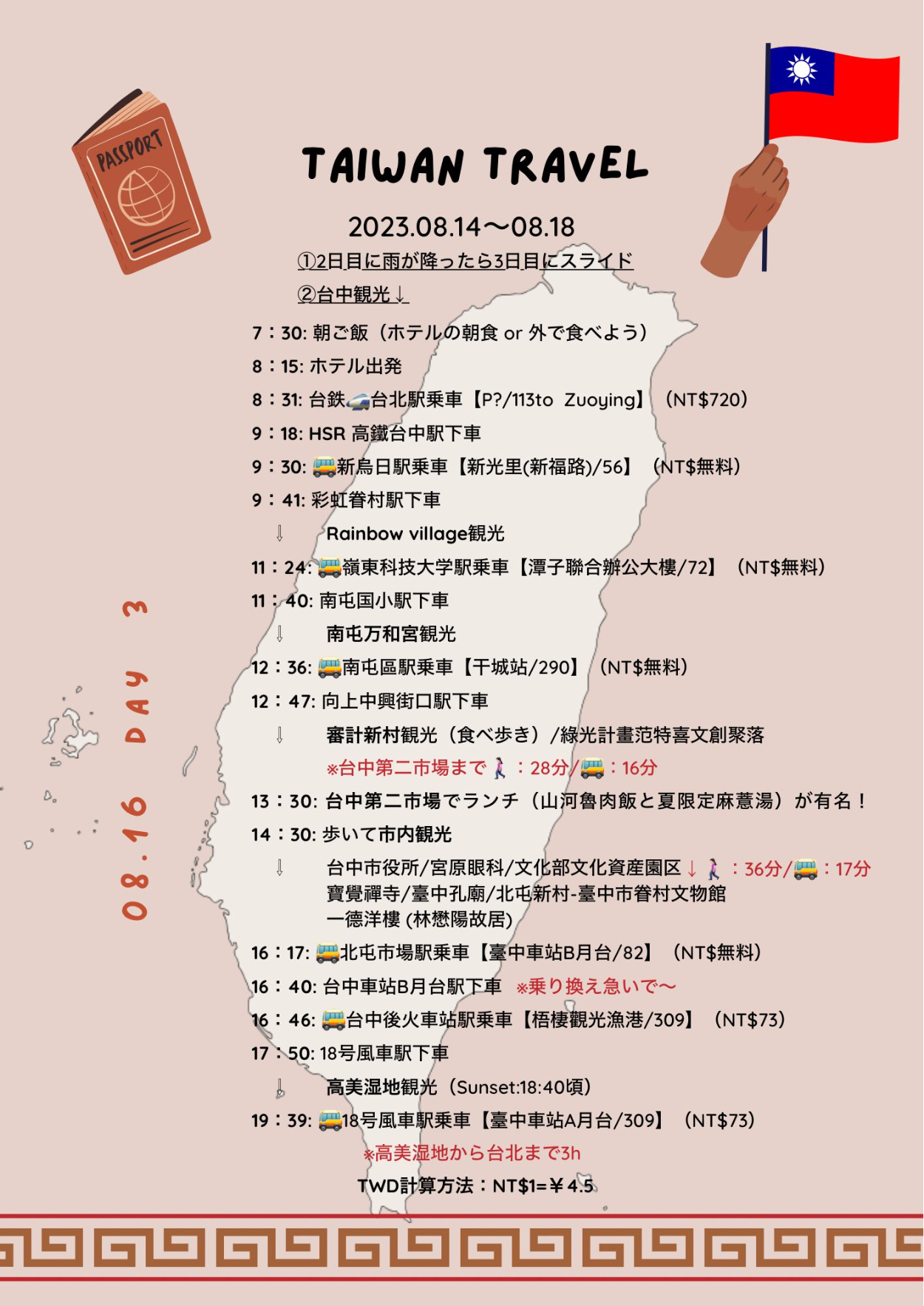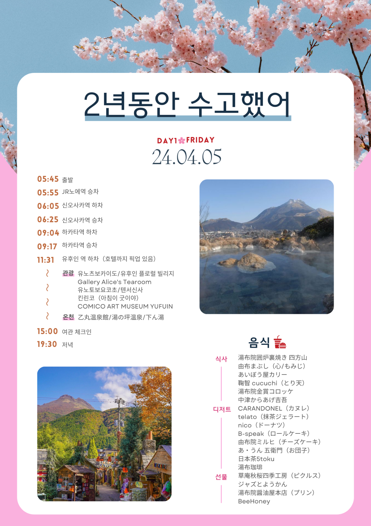 【自主制作】旅程表 Nabi(나비) WEBデザイナー・SNSマーケター・プランナー OVERVIEW 【Canva】企画・スケジュール・デザイン 2023/3 兵庫旅行2022/11 岐阜旅行2023/8 台湾旅行2024/11 京都旅行2024/11韓国旅行2024/04 九州旅行2024/5 香港・マカオ旅行