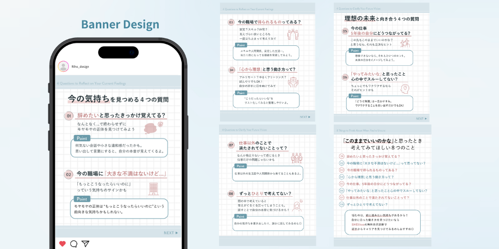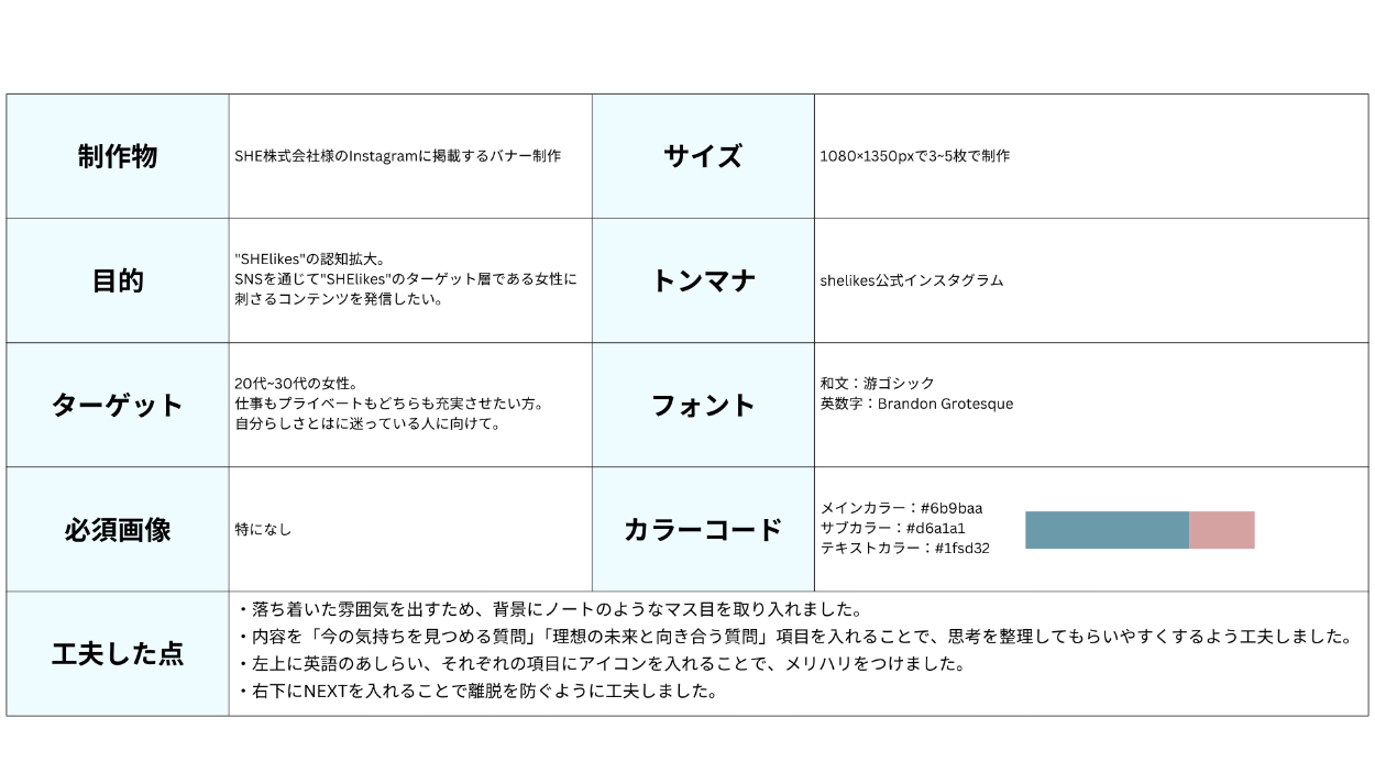 SHE株式会社様のInstagramに掲載するバナーを制作し、コンペ形式で採用されました。