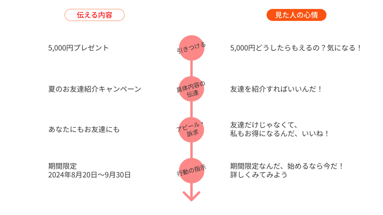 強力な視線誘導: 寒色系の背景に対し、補色(反対色)であるオレンジを最も重要な「5,000円」に使用することで、一瞬で特典内容に目がいくよう設計しました。