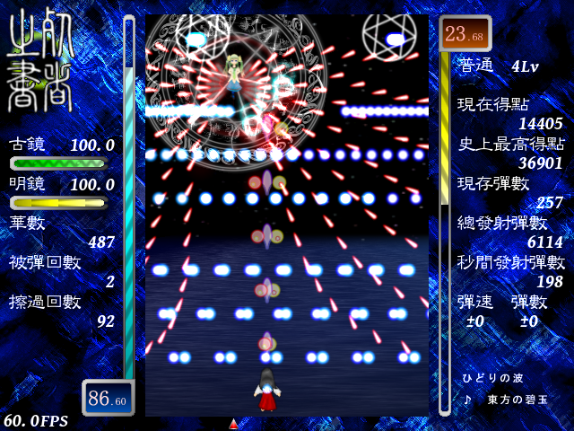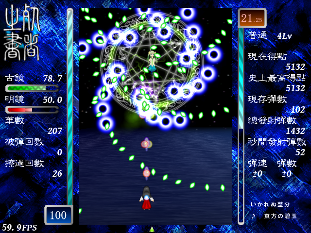 - ゲージを消費して敵の弾速を一時的に半減させる「古鏡」がある。