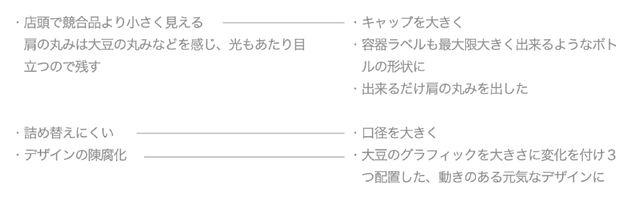 ・さらなる売上UP ・容器の使いやすさUP ・店頭での訴求力UP