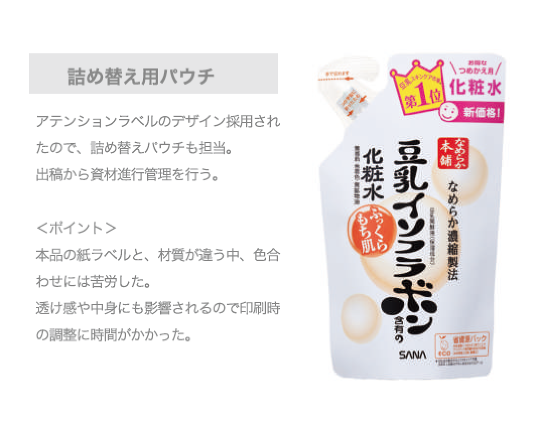 リニューアルデザイン案提案、PR ラベルデザイン作成、資材版下作成、入稿作業、資材進行管理、ブランド管理