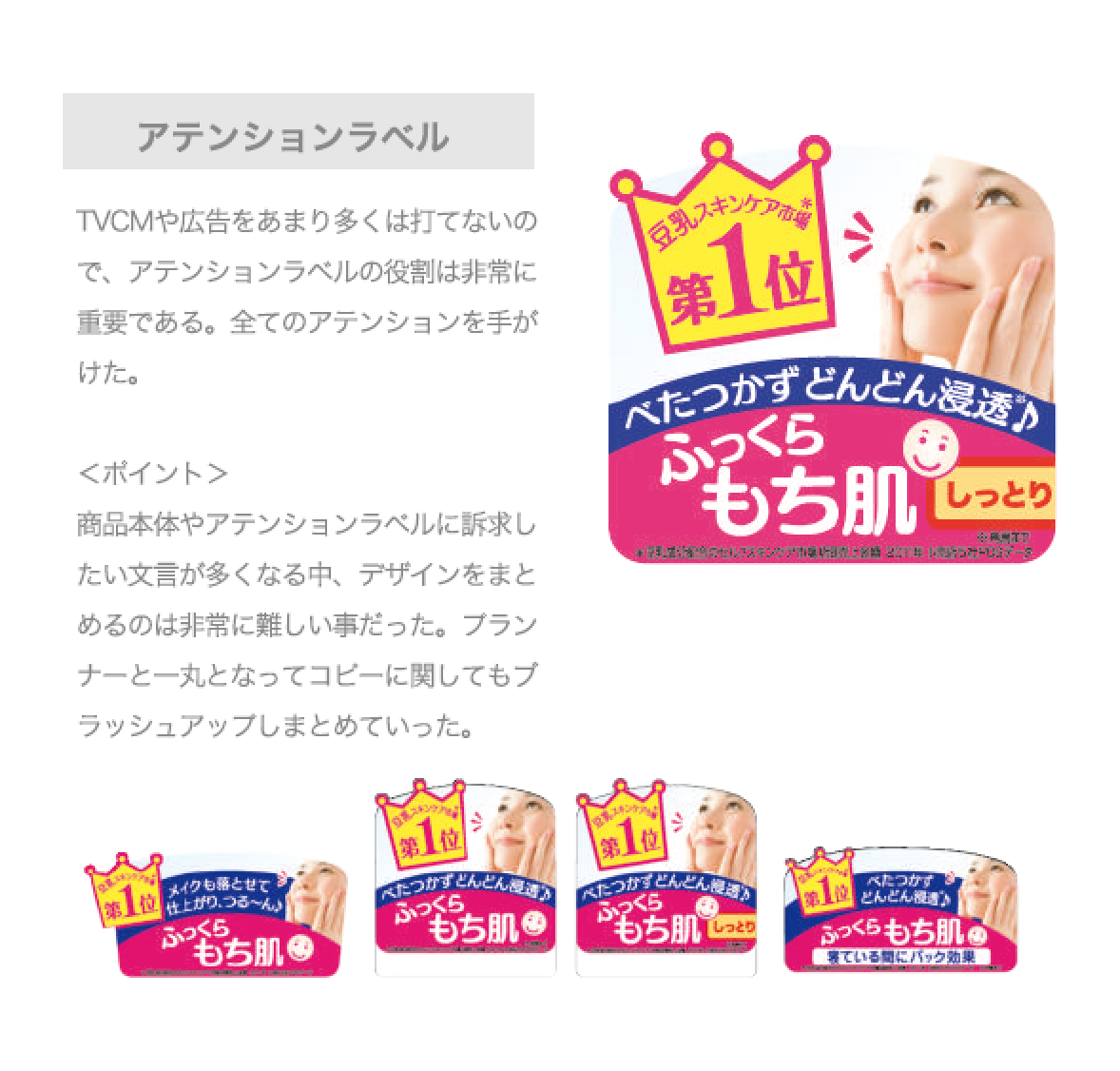 豆乳イソフラボン配合のスキンケアシリーズ。ロングセラーブランド。豆乳スキンケア市場第1位の実績。
