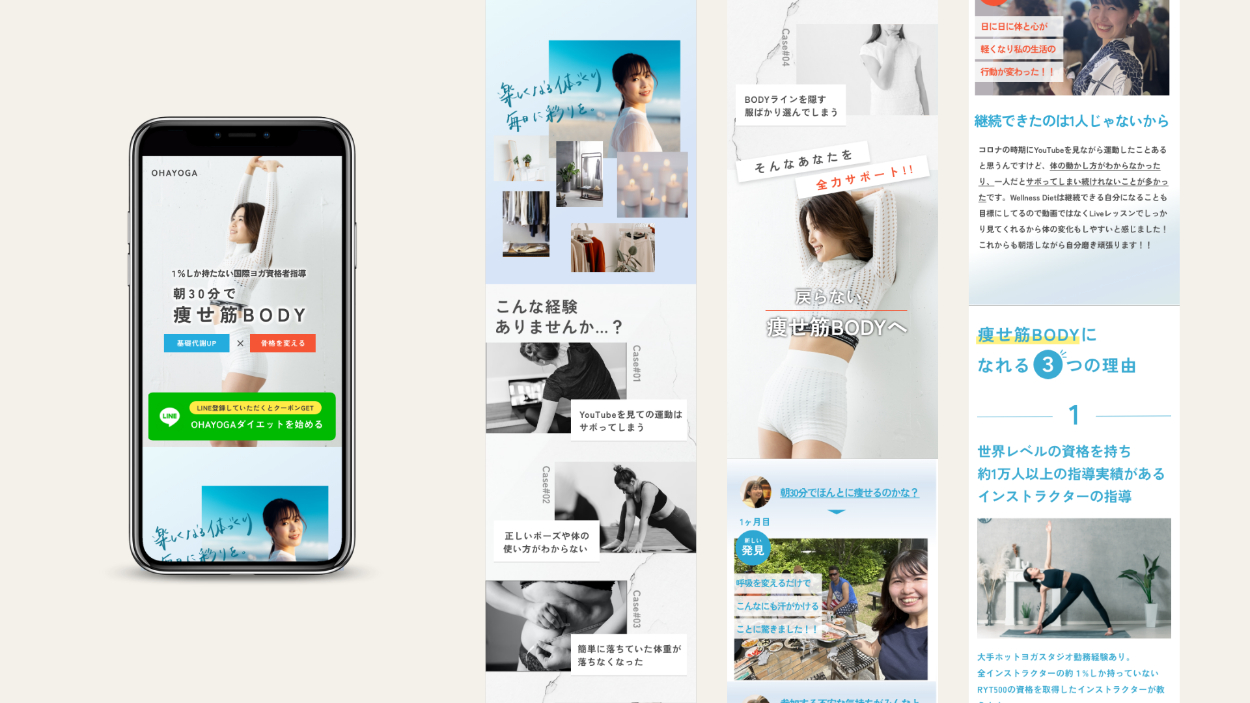 ペルソナ設計|LP制作(構成・デザイン)|オンライン朝活ヨガ| N フリーランスWebデザイナー 自身で開催している朝活オンラインヨガサービスOHAYOGAのLP制作をしました。ペルソナから考え構成・ライティング・デザインを考えました。ペルソナデザイン