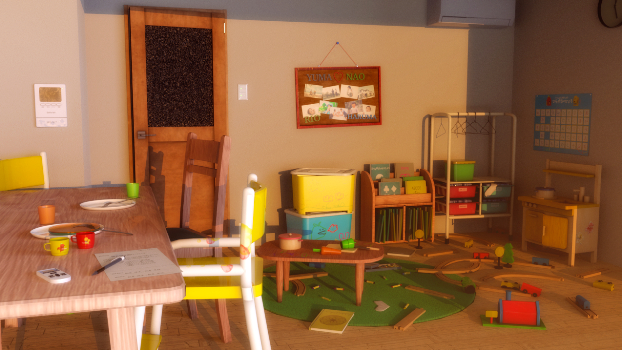 コンセプト: 「慌ただしいけれど幸せな生活」「観た人が暖かい気持ちになれる」をテーマにした静止画作品