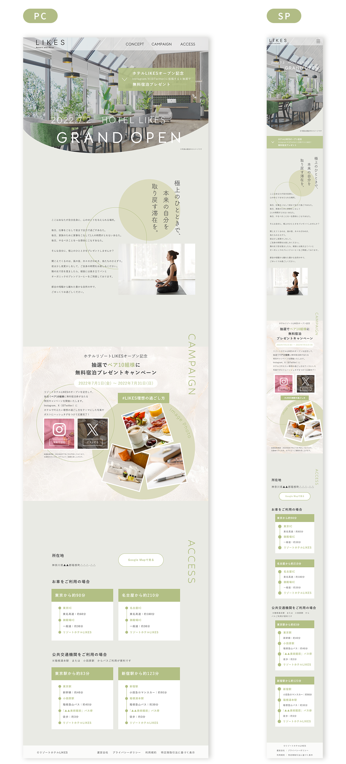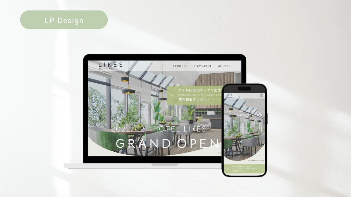 『リゾートホテルLIKESの新規オープンキャンペーンサイト制作』(PC・SP)※レスポンシブサイトを想定